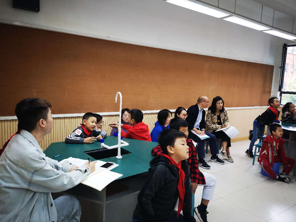 在本节课结束后,行知小学黄老师,墨池小学老师与我校老师们共同探讨本节课还存在哪些问题。黄老师重点讲到材料的选择,关注学生的设计图以及设计的许愿灯的安全性等问题需要注意。