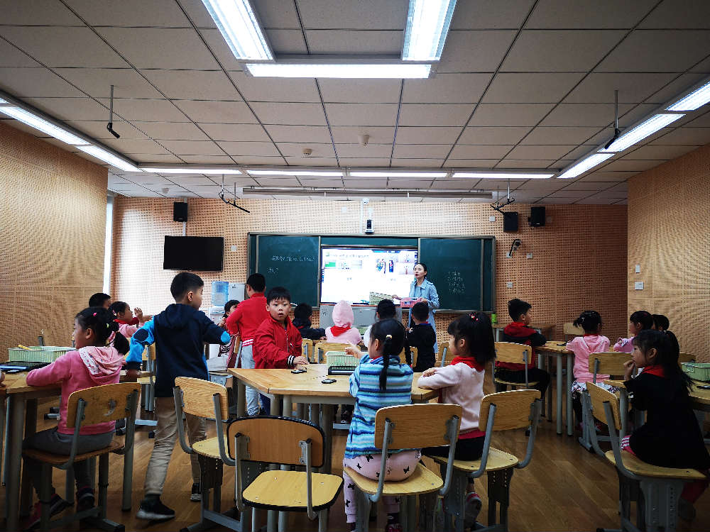 今天,王俊璐老师给泡泡们再次带来了一趟生动有趣的智慧课堂《磁铁能吸引什么》。一开始王老师通过钓鱼挑战引发学生们的疑惑,一组学生的鱼能调起来,其他组的鱼不能调起来?通过学生分析引起了孩子们的好奇心。怎样才能把鱼钓起来?孩子们仔细观察,发现奥秘在于鱼身上多了一个钉子,磁铁能吸引什么物体呢?这个问题一下子把孩子们吸引住了。王老师立刻趁热打铁,带领同学们认识材料并将事先准备好的材料发放下去,请孩子们仔细观察后,预测这些材料是否能被磁铁吸引,并分成两类(金属、非金属)。孩子们飞快地完成了任务,然后迫不及待地领取磁铁开始了实验。经过试验后,孩子们非常容易的发现,原来磁铁能吸引的是铁材料啊。王老师接着让同学们表达了自己的猜想,用智慧课堂的TBL反馈器功能将孩子们分成了两部分,同时用分层教学的方式让学生分别体验了教室寻铁和探究硬币和钥匙哪个能吸两个活动。活动完成后再分别分享,让全班同学学习了两个活动的成果和智慧。下课后,孩子们依然恋恋不舍的离开了教室。