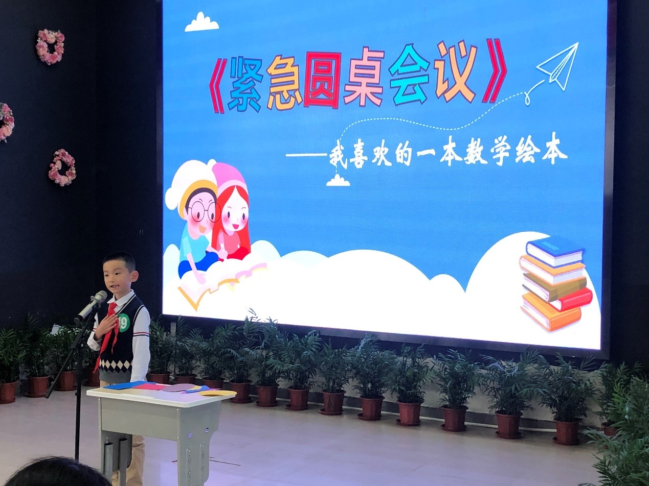 比赛前,各班数学老师大力动员学生积极参与,并鼓励家长与老师一起对学生的语言表达、绘本创编作精心的辅导。校级初赛采用层层推选的方式,每班选拔一名学生代表参加年级组的比赛,年级组推选5名学生参加学校的比赛。评委根据选手对绘本内容的介绍和创编、现场感染力、以及与评委的互动情况进行打分。最终,三年级五班的张文昊同学讲述的《紧急圆桌会议》获得了第一名。