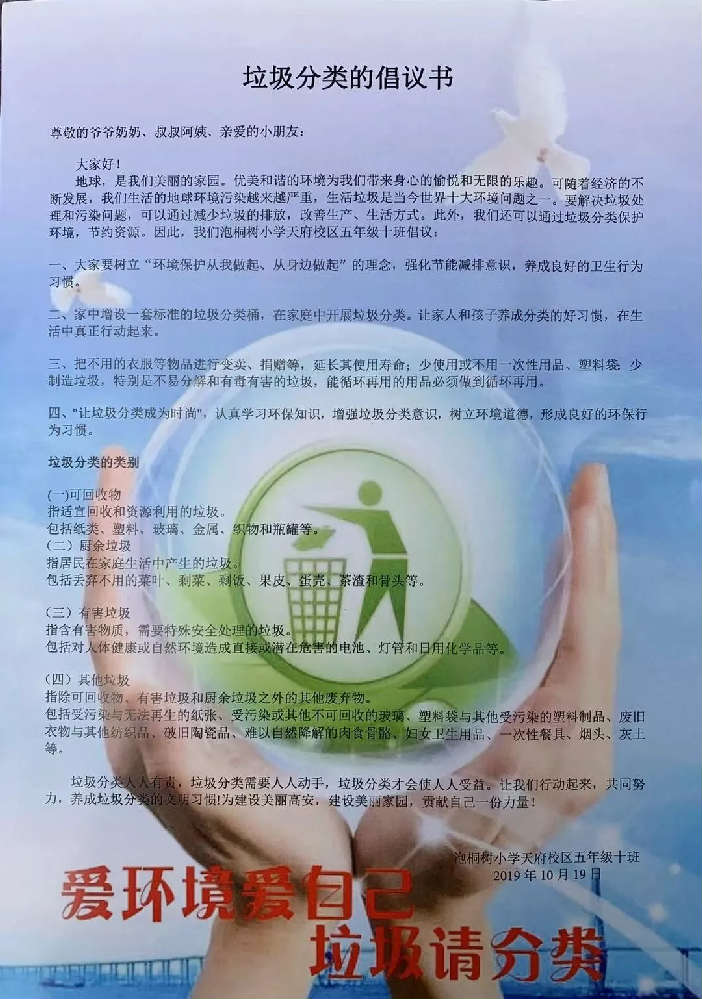 这个周末,做为城市中渺小的一员,成都市泡桐树小学(天府校区)五年级十班倡议爱环境爱自己,垃圾请分类的上街倡议活动!