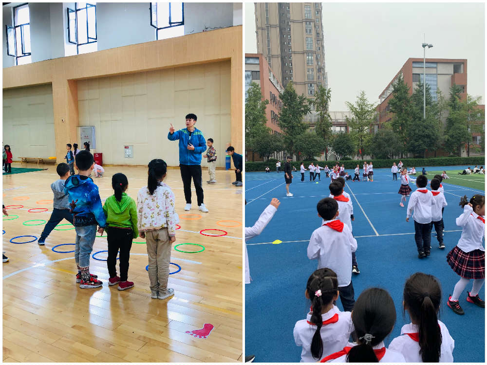 在谢郭军老师的课中,我们看到的是各种游戏带给学生的欢乐,充分体现学生在玩中学、学中乐、乐中学。在周瑞老师“跳一跳”课中,利用各种器材和分组练习,引导学生学习,充分调动了学生的学习积极性,教学过程紧凑流畅,生动有趣。在张建伟老师的课中,利用生动的讲解和示范,调动了学生的积极性,课堂气氛非常活跃,营造出一个开心快乐的学习氛围。在张燕妮老师的课中,教师自身用一次次准确的难度示范引导学生练习,发展了学生的灵敏性和学生的身体素质。