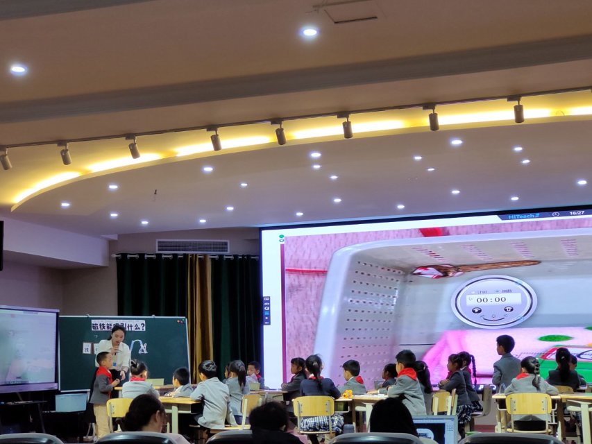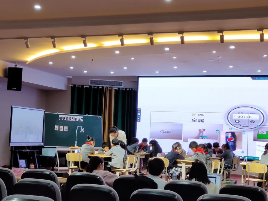 其中王俊璐老师带去的这一堂科学课,也将科学探究的方法在课堂上渗透的很充分,让孩子们学会用科学的方法去探究,去解决磁铁究竟可以吸引什么物品的问题,并且按照兴趣分层,设置了不同有趣的挑战,让孩子们在活动中巩固科学知识,最后还拓展延伸开拓思维去思考磁铁在生活中的应用。