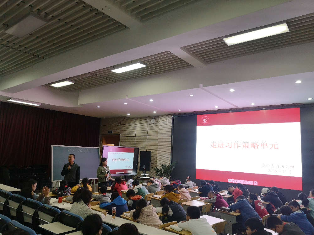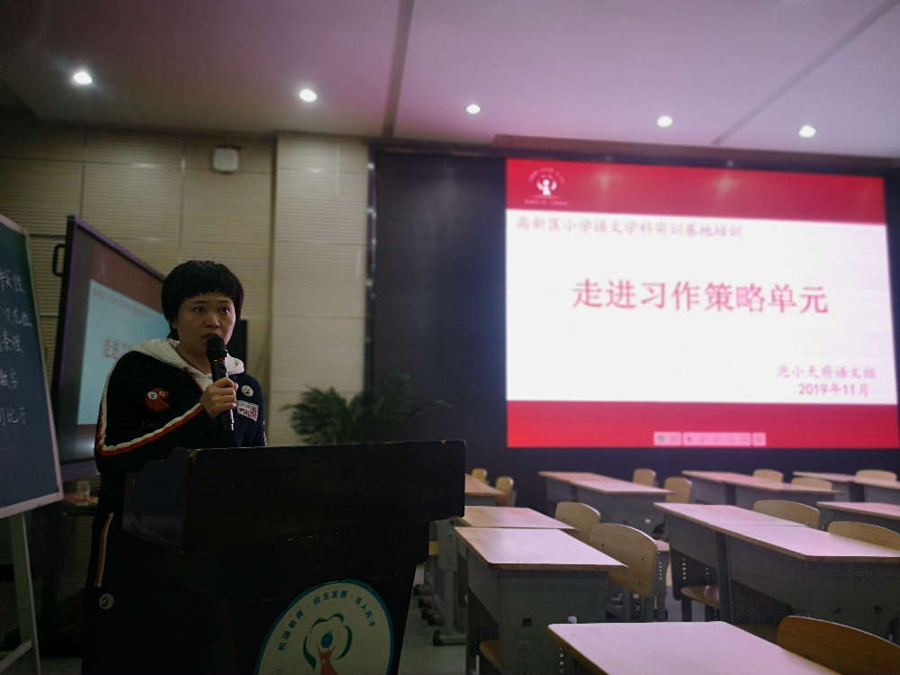 2019年11月5日下午,成都市泡桐树小学(天府校区)语文组齐聚多功能厅参加了“习作策略单元初探”的教学研究活动。