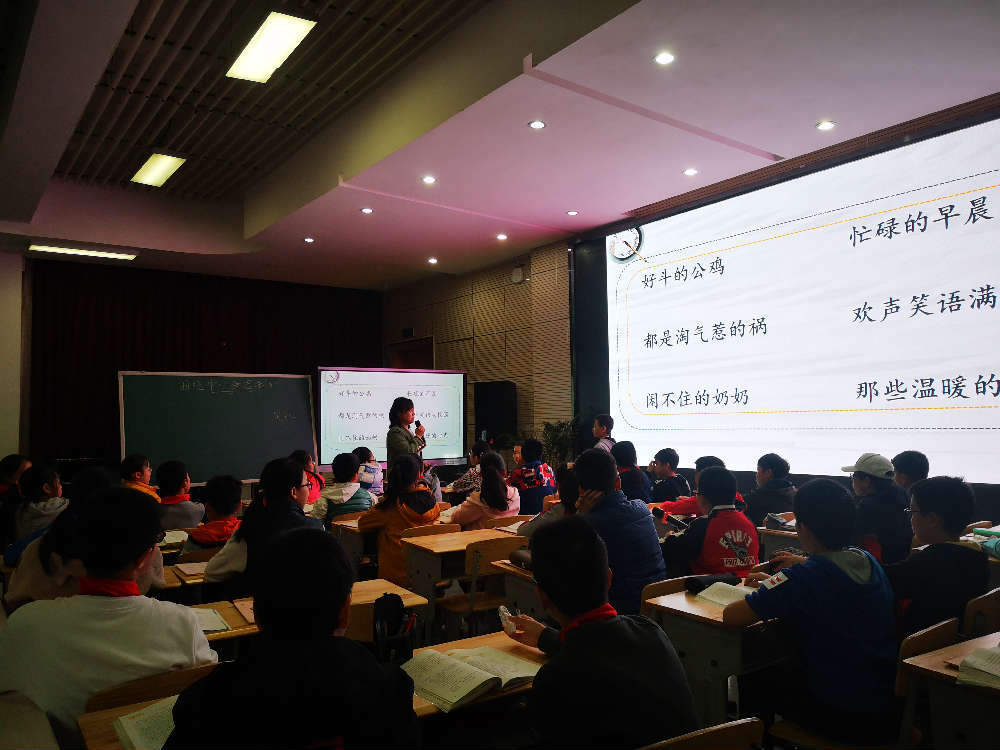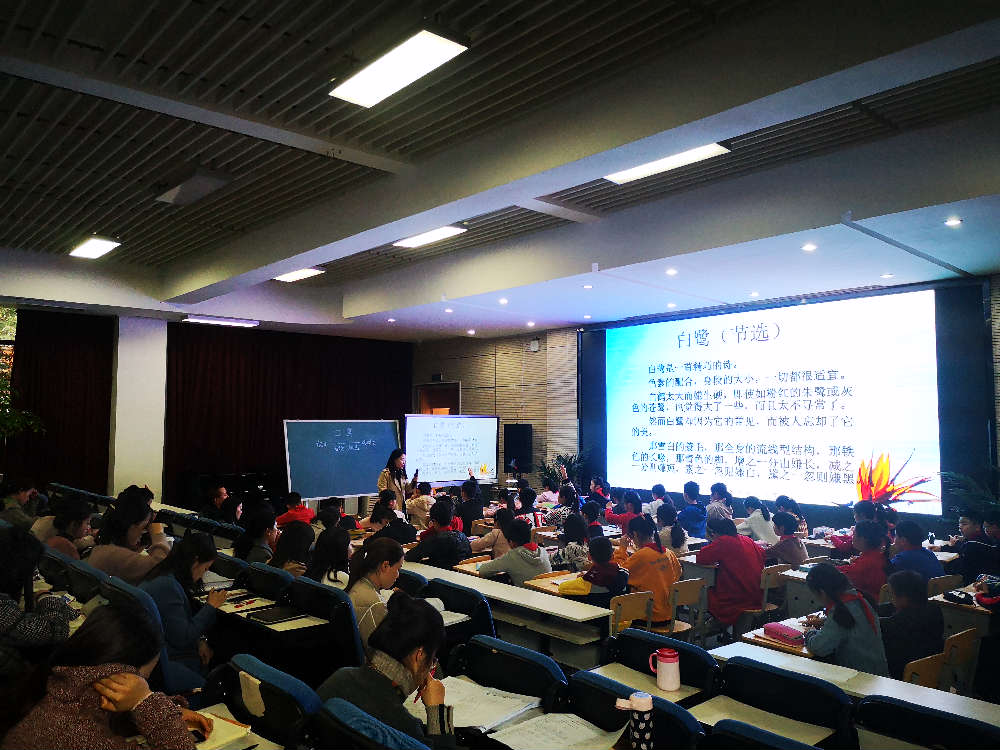 接着,五年级张敏老师为大家带来习作片段训练,以散文《白鹭》为文本,练习改写说明文。张敏老师的课堂精致灵动,循循善诱,点评精彩。她带领着学生在对比朗读中发现散文和说明文语言的不同,引导学生在进度课文中感悟方法,习得方法并完成习作实践。