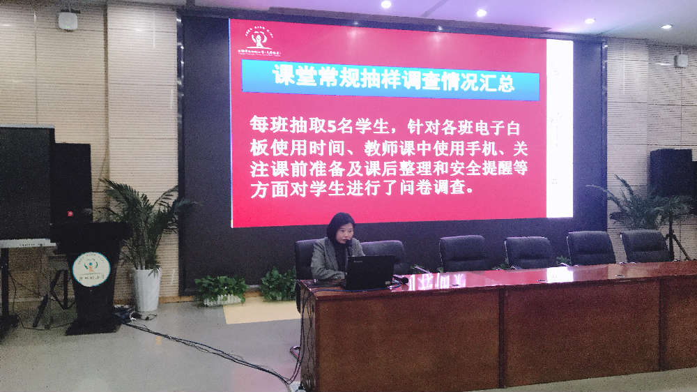 教师发展中心的廖敏主任随后对学校半期教学常规工作进行了总结和补充。廖主任指出教学常规是学校教学工作的核心,是学校的立足之本,更是教师的本职工作。学校教师发展中心将加大教学过程的监控和管理力度,强化教学精细化、规范化管理,真正做到为了每个孩子的最大可能发展负责。