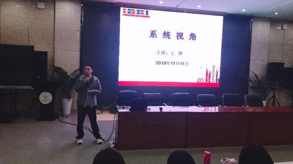 为了帮助老师减压,同时更好地促进家校合作,帮助学生成长,2019年11月11日下午,由学校的王律老师给全体老师带来《系统视角》的讲座。