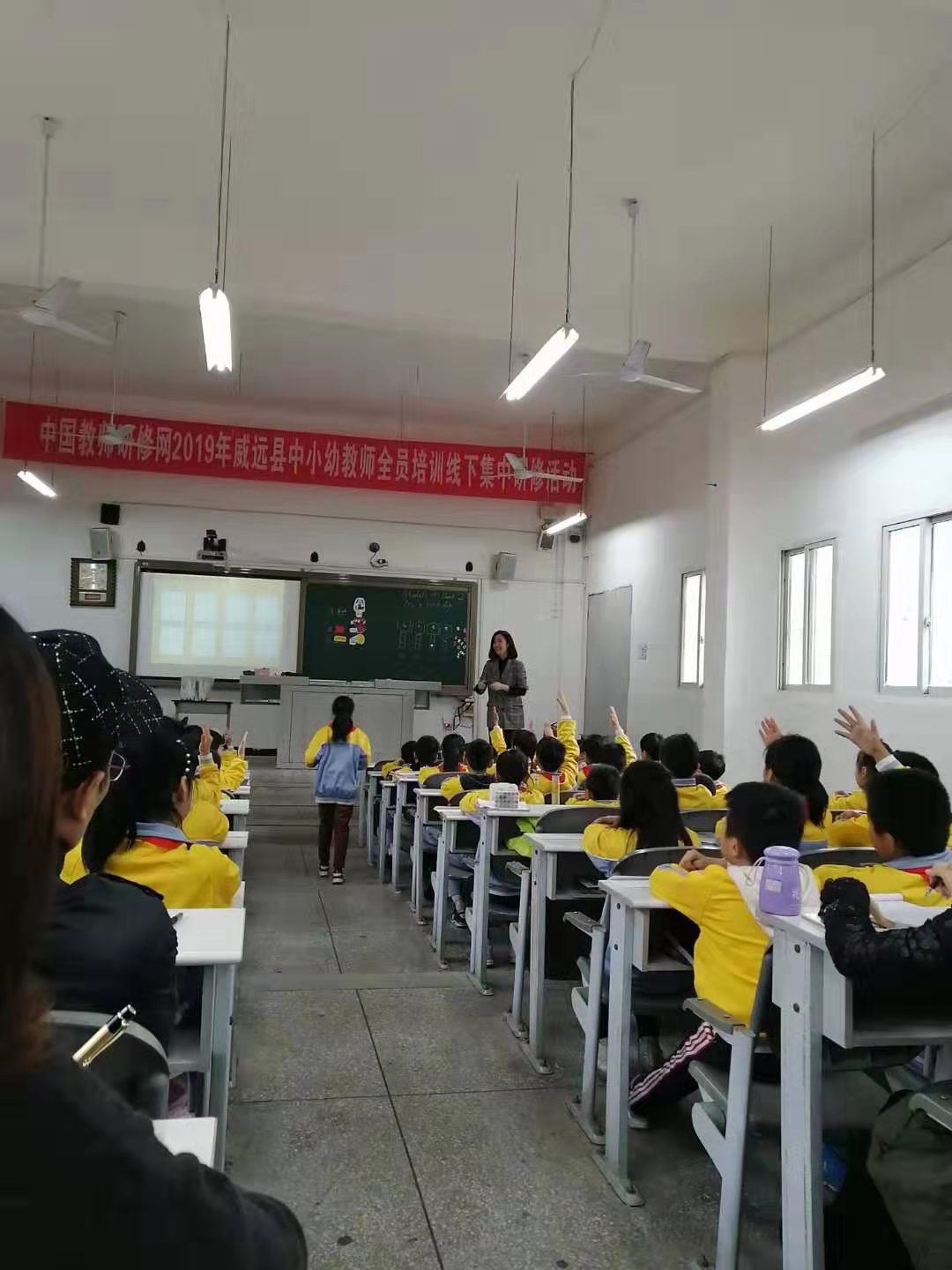 2019年11月12日,成都市泡桐树小学(天府校区)英语老师汪郑琳前往四川省内江市威远县实验小学为2019年中小幼教师全员培训线下集中研修活动进行送教。在行前,汪老师对新教材与新学情进行深度分析,对教学设计进行思考和专研,通过泡小天府英语教研组团队群策群力、集体磨课,最终形成了一节内容丰富、活动生动有趣的三年级英语课堂设计。当天在汪老师的课堂上,通过老师丰富的游戏与活动组织,帮助孩子们从整体上、个体上都充分操练了主要词汇与句型,并且在富有逻辑的过渡环节里帮助孩子们在真实的情境中运用了所学语言。同时,汪老师通过有效的“放手”与创意的游戏,引导学生发散思维,提升了学生的语言运用能力与合作探究的能力。一节课结束后,汪郑琳老师通过简短的微讲座,将自己本堂课的教学思路,日常的教学思考以及泡小天府英语课程的理念与实践与在座老师们进行分享,得到了老师们的一致好评。本次活动后,汪老师也对自身教学进行了反思与总结,在未来的教育教学工作中将扬长补短,加强学习与交流,在团队中继续努力前行。