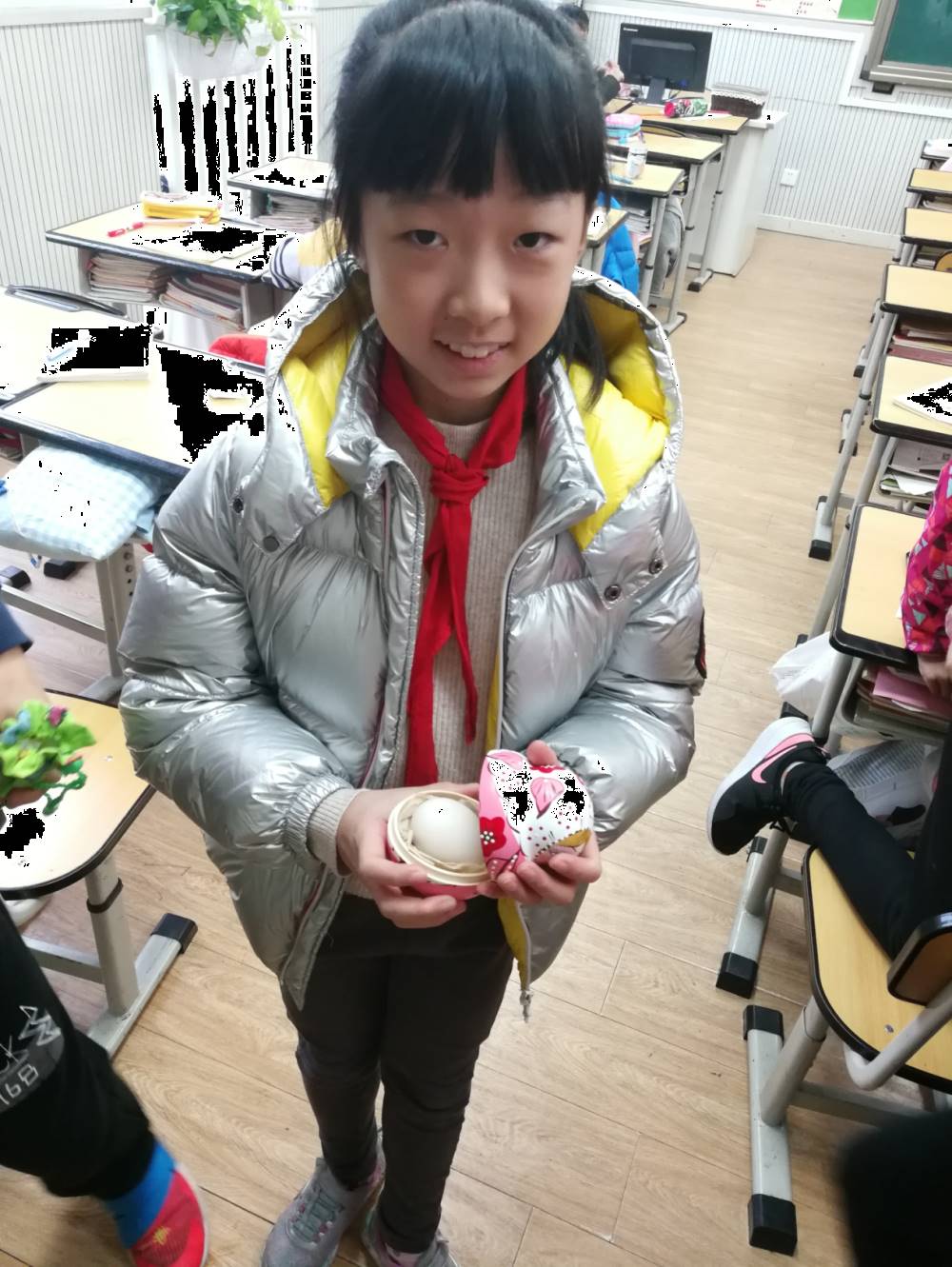 同学们期盼已久的“护蛋行动”开始了!小泡泡担负起保护自己鸡蛋的任务,无论是在课上还是课外活动时,每位小泡泡在不影响正常上课秩序的情况下,选择自己的方式携带鸡蛋、保护鸡蛋。有的小泡泡为鸡蛋做了美绘,有的为鸡蛋准备了暖暖的窝,还有的把鸡蛋揣在口袋里,给小鸡蛋穿上棉衣……