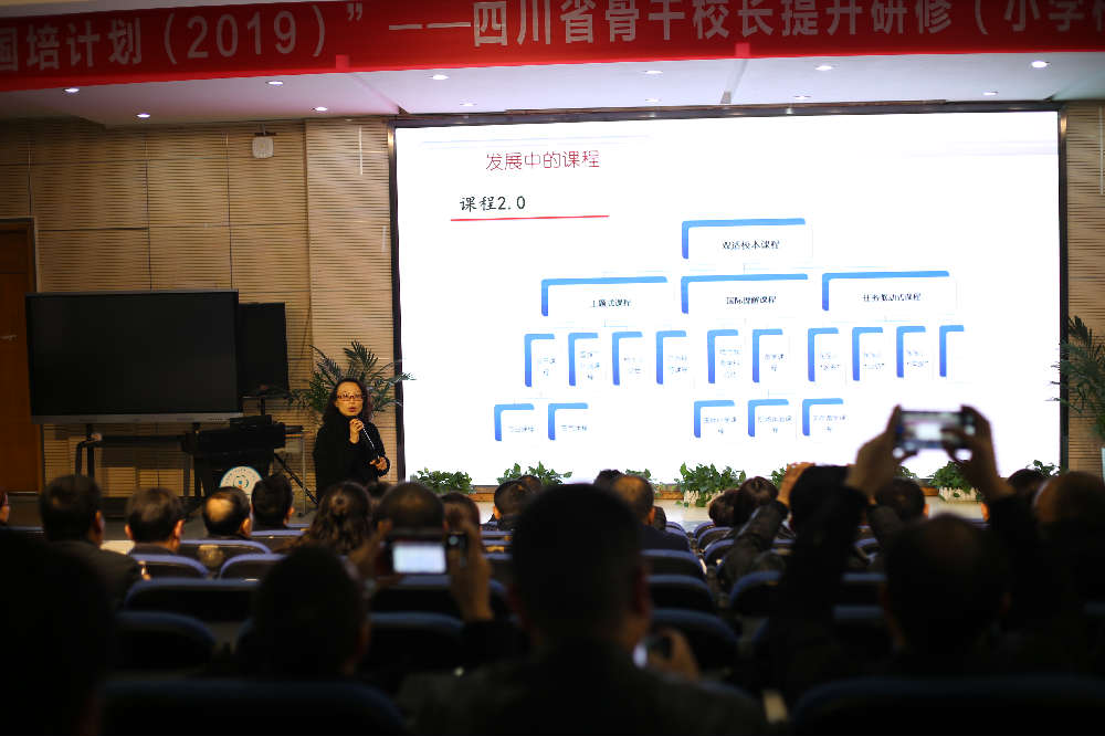 2019年12月5日下午,“国培计划(2019)”——四川省骨干校长提升研修(小学校长第二批)集中培训项目在成都市泡桐树小学(天府校区)举行,来自省内各地市州的80位骨干校长莅临我校参加研修。