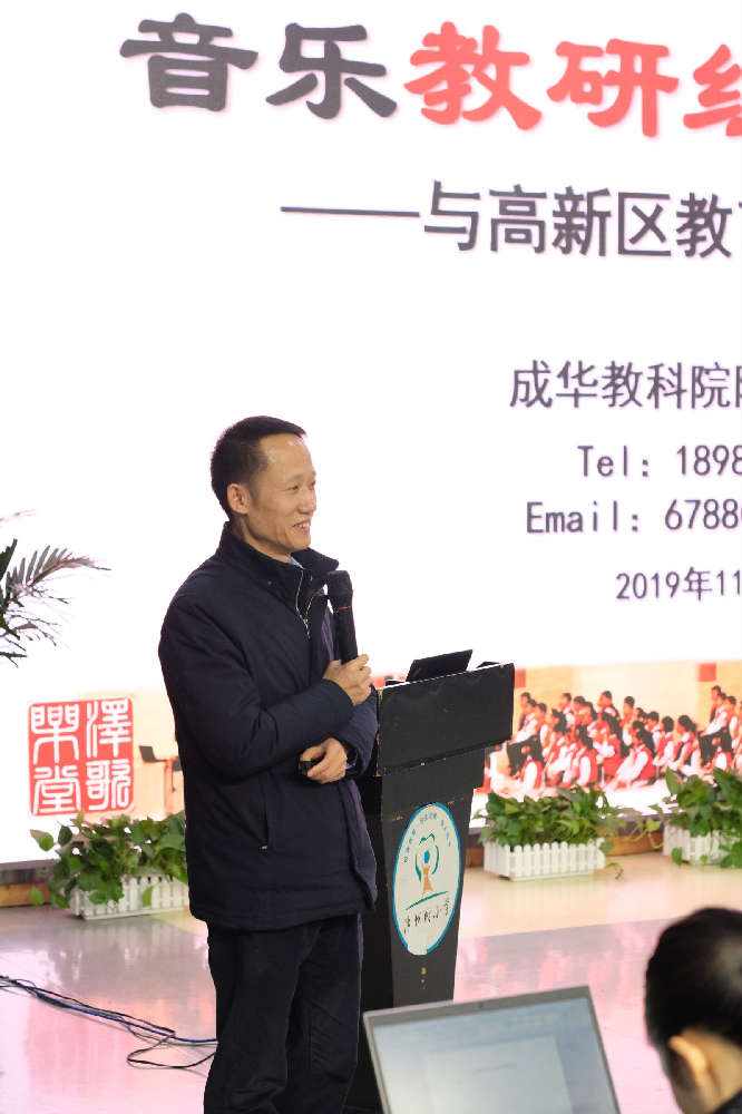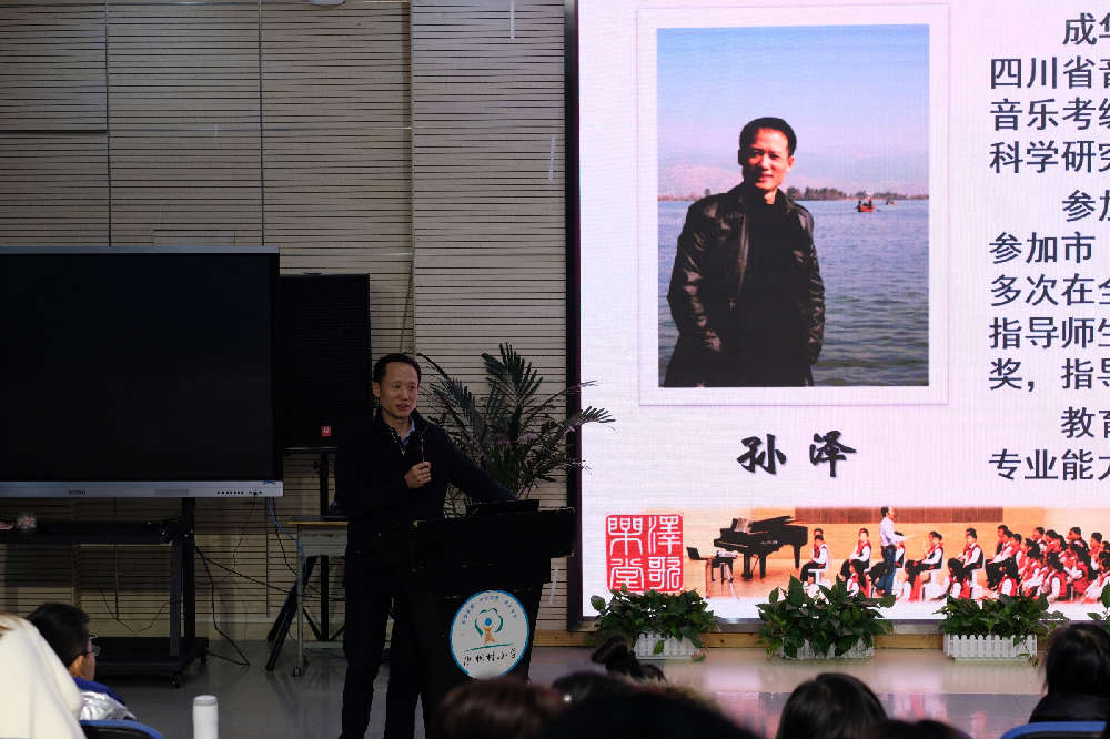 此次活动邀请到,成华区教研员、成都市学科带头人,四川省音乐家协会小音乐家学会常务理事、省音乐考级委员会专家评委,成都市成华区教育科学研究院附属小学校长孙泽校长做专题讲座。孙校长以幽默风趣的方式,深入浅出地为老师们剖析了当前学校音乐组教研存在的问题,又引经据典地为教研组有效教研提供了方向。通过讲座,老师们更加深刻地认识到:教研组作为校本研修的基本单位,我们应在深刻认识校本研修价值的基础上,切实从师本出发,从教研组共同关注的问题着手,着力解决教育教学中的实际问题。应抓好团队建设,营造和谐、务实的学术研究氛围,让每一个个体在群体互动的状态得到最大化的发展。讲座现场,笑声不断、歌声不断,在愉快的氛围中,获得了方法、得到了启示。老师们纷纷表示欢迎再次聆听孙校长的讲座,并将此次的收获在组内研修中进行巩固和消化。