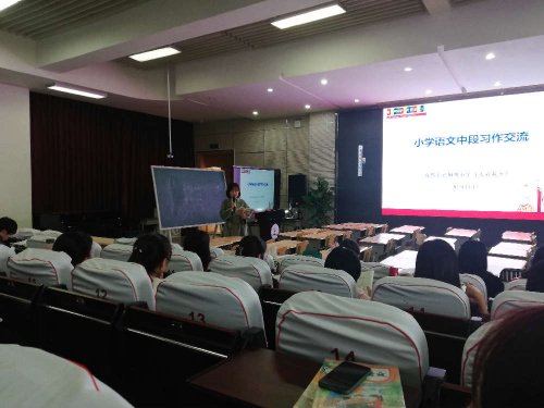 最后,张敏老师和李媛老师就自己的教学经验,向全体语文老师做了习作专业引领发言。