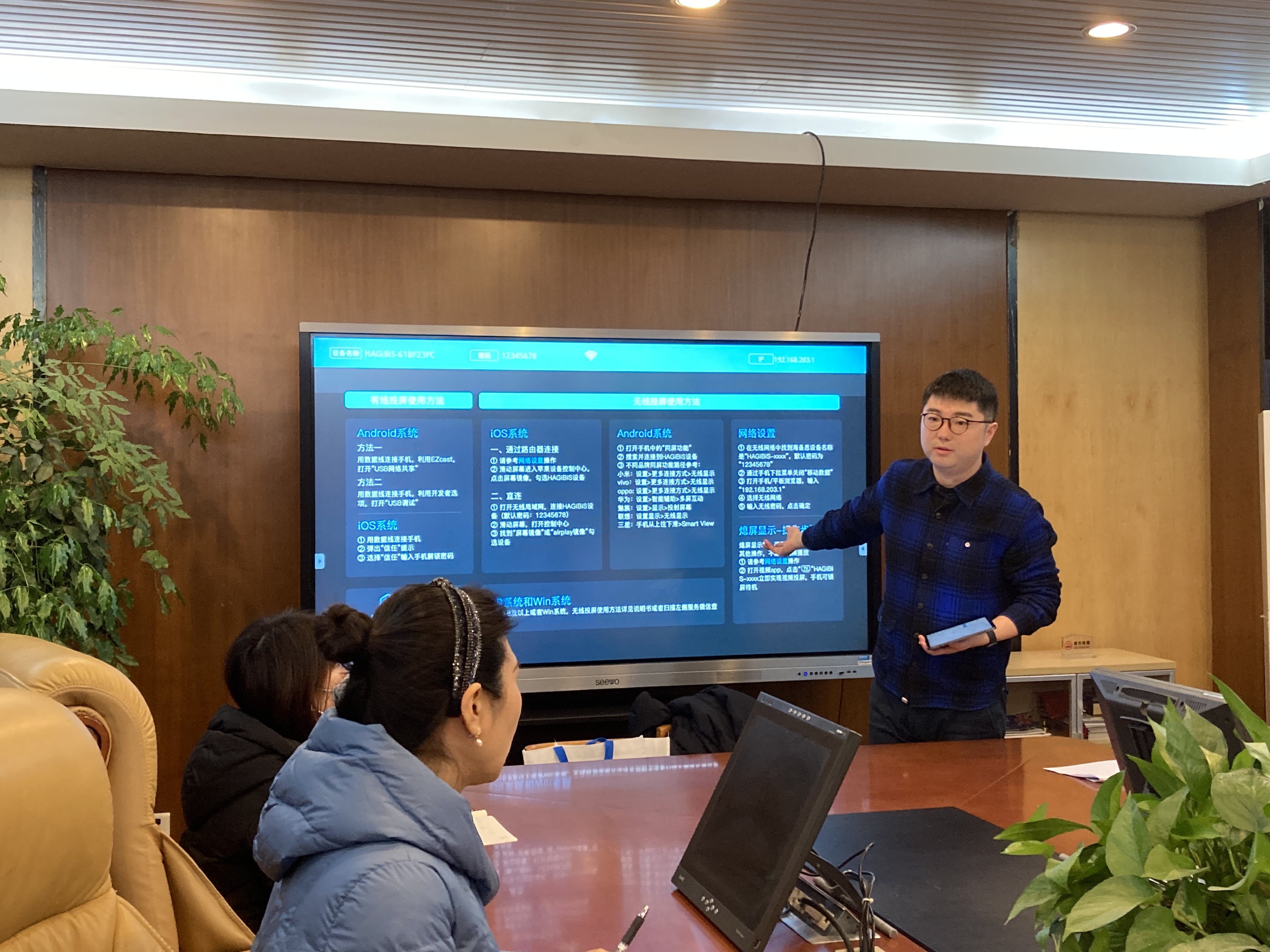 培训于上午9点10正式开始,AR培训人员首先向我们介绍了演示AR所需要的设备及连接AR设备的方式。培训人员在现场展示了投影设备的各个接口是如何连接上电脑屏幕的,并操作演示了如何将设备投影到屏幕。