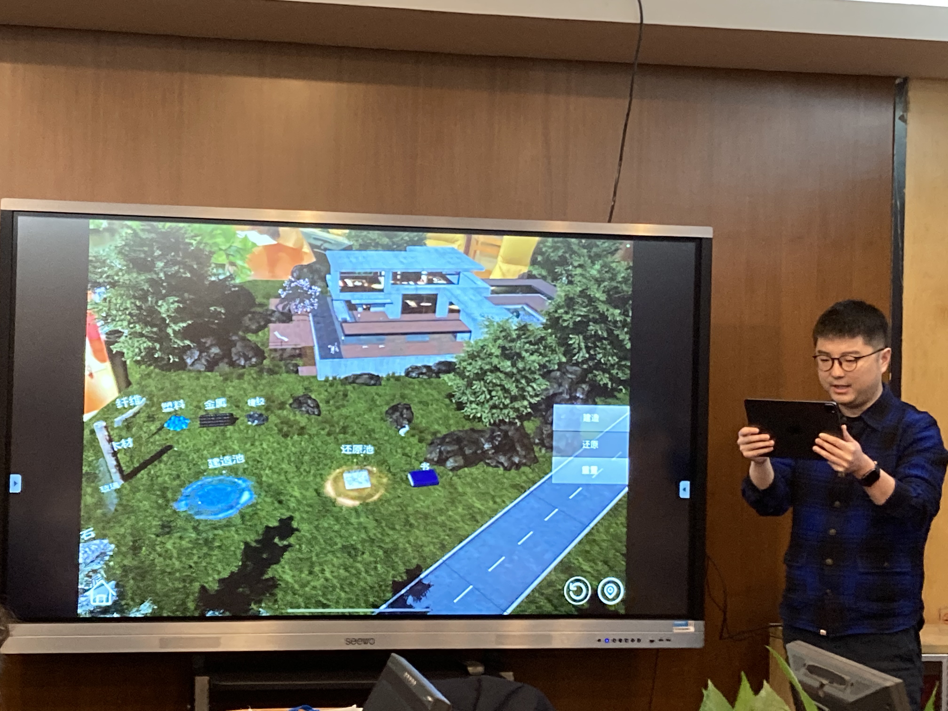 老师们都被平台充满科技感的AR投影深深吸引,均跃跃欲试AR的投影功能。陈洪娟老师就平台课件能否由一线老师原创同讲解人员进行了沟通。