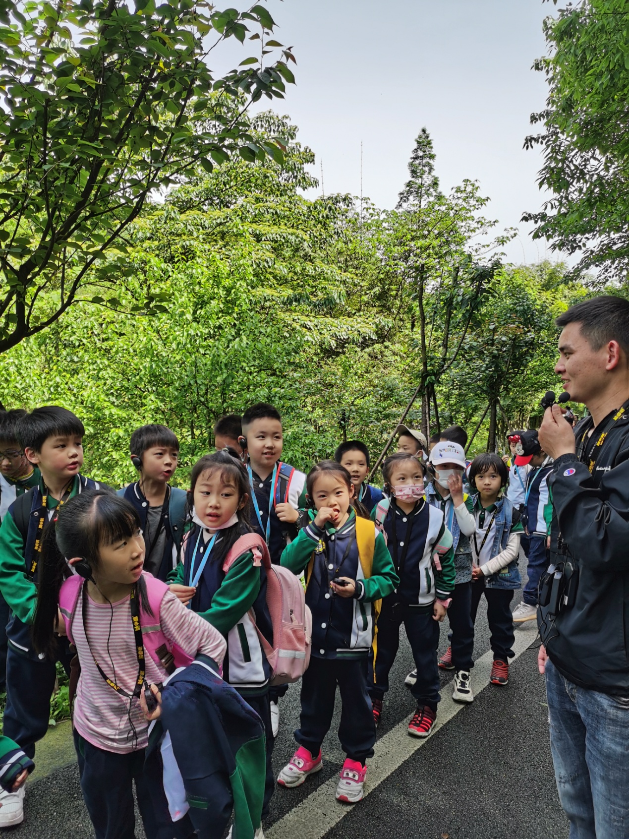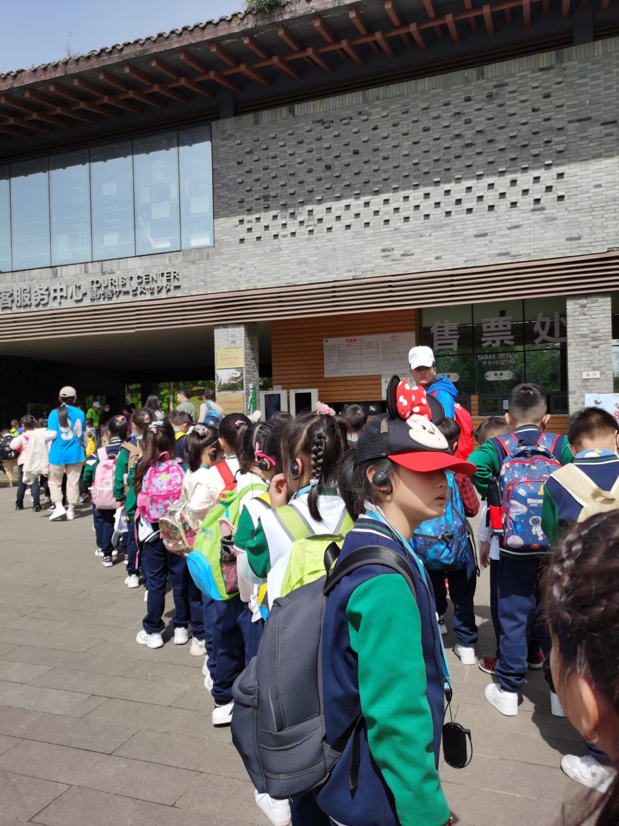 4月16日晨,带着期待与问题,泡天一年级“桐眼赏世界”的主题游学活动走近都江堰熊猫基地。各班孩子背上书包,带上研学手册,跟随研学导师,驱车前往都江堰。