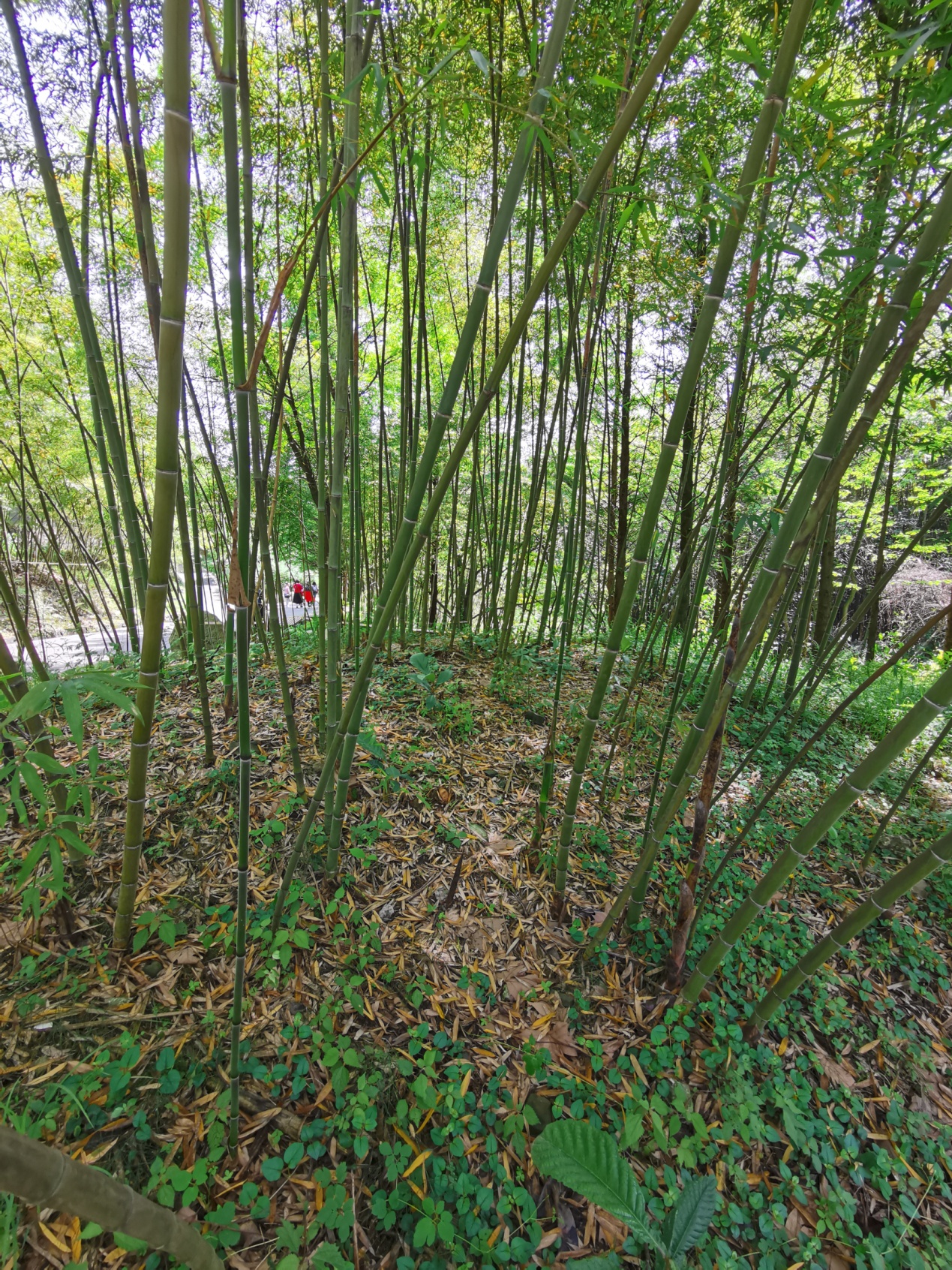 在翠竹葱茏,成片的草坪和蜿蜒步道中前行……