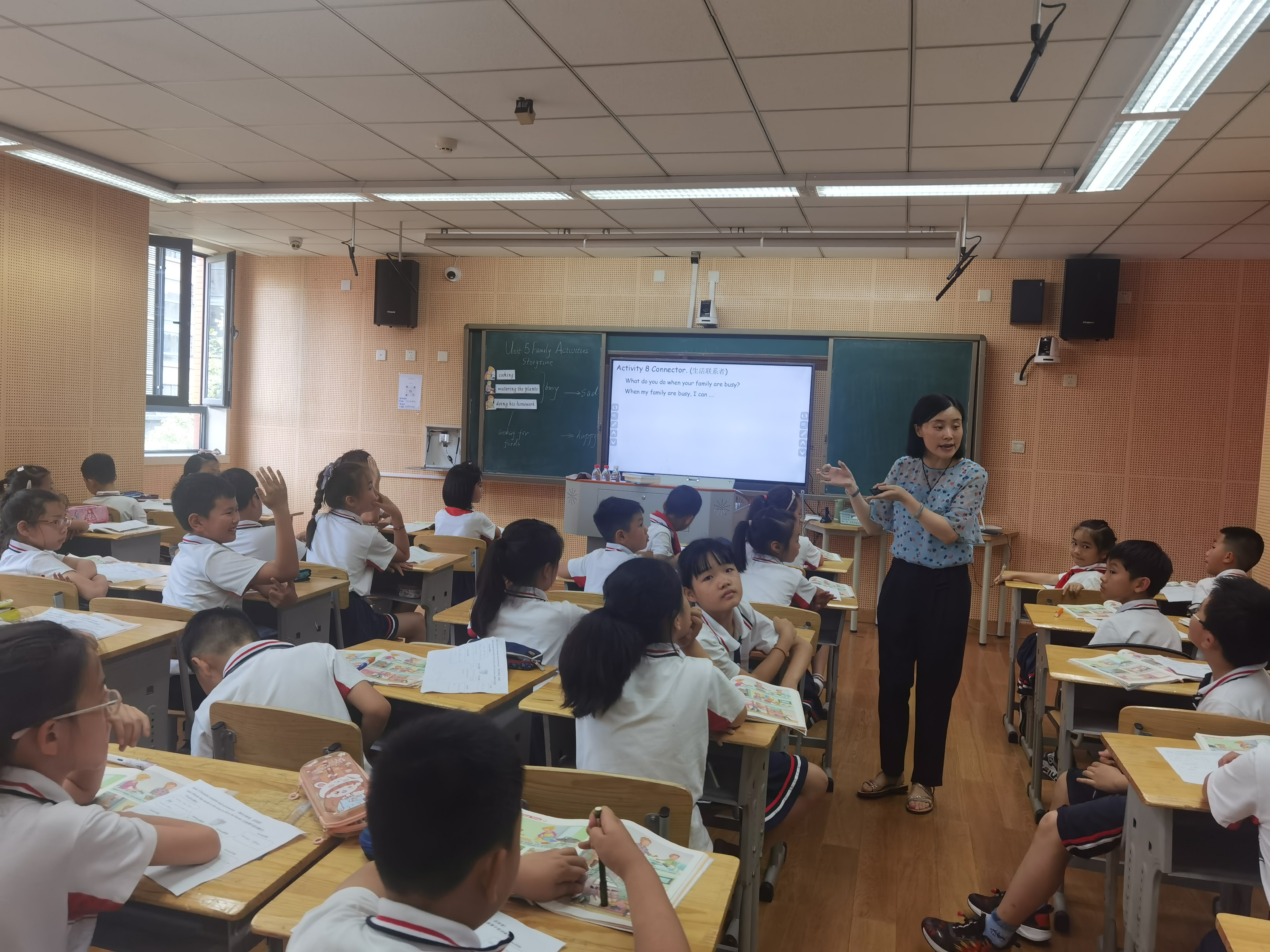 6月15日下午,李瑶和雍杨两位学科组长带领泡桐树小学(天府校区)全体英语教师在录播教室开展了关于人教版新起点三下Unit 5 Family activities(story time)教学以及英语组课题的研讨活动。本次教研活动特地邀请了市教研员樊波老师莅临指导。