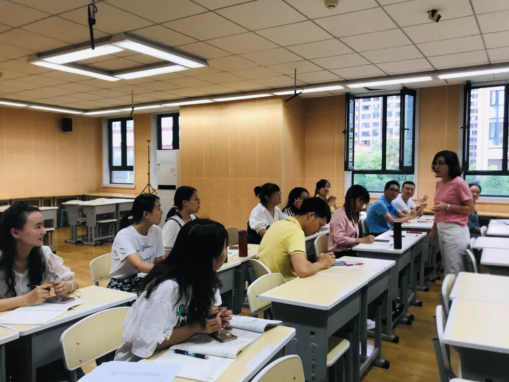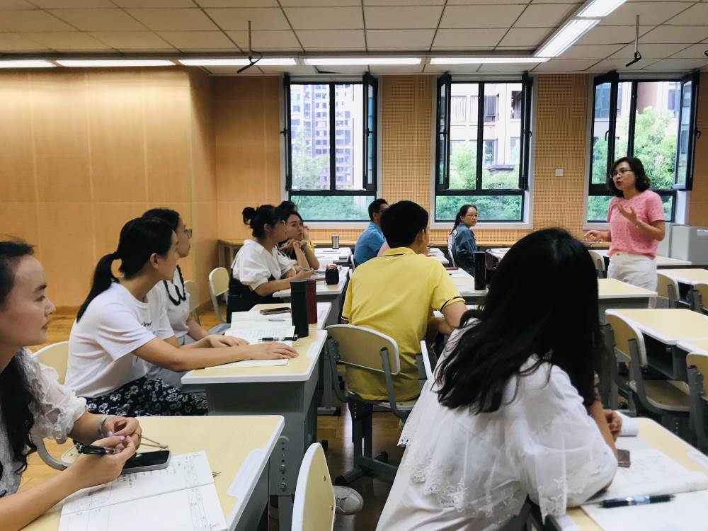 9月14日下午,语文组分享式教学坊在录播室二举行了开班仪式。会议由来方老师主持,来老师介绍了本期工作坊计划,何庆华老师做了经验分享。