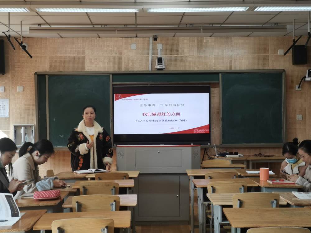 曹娟副校长认为今天的讨论很深刻、全面,同时强调,班主任老师要继续加强学习,对“应急的认识,应急的态度,应急的行为”有更全面的了解。何庆华主任认为应急事件能锤炼班主任的综合素养,也能作为班本课程的素材。