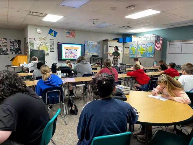 “学生们有的坐地上、有的斜靠在椅背上,有的站着靠在桌子前......横七竖八,跟国内学生课堂上整齐划一、端正坐姿的状态天壤之别!而且中途老师还让学生边吃零食边上课!”以上是汪郑琳老师第一次走进美国小学二年级一个普通班教室时看到的情形,给了她相当大的视觉冲击。面对着和国内小学里各种不同的要求和期待,她开启了美国的中文教学生活。