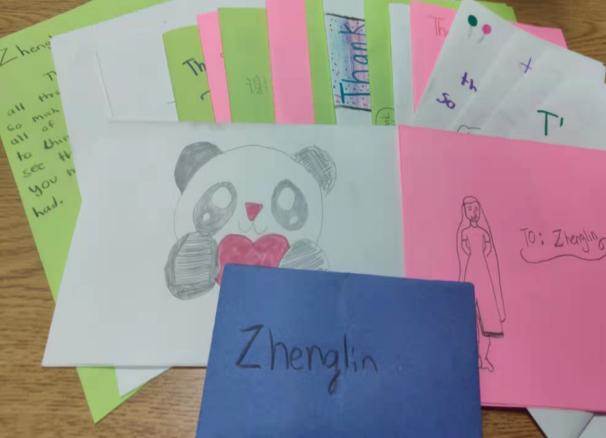除了国际中文教师的身份,她同时还是一名中华文化的弘扬者,给美国学生带来中国传统文化体验课:太极、书法、国画、中国传统节日等;中国文化理解课:饮食、熊猫、生肖等。通过她最新鲜、最真实的一手资料和讲解,很多学生对中国有了非常好的全新认识,下课后总是有许多孩子还围着她询问有关更多中国的信息,不少孩子表示未来想去中国旅行,看成都的熊猫基地,吃中国的美食。他们在课后写给她的感谢信让她感动不已,让她从另一个角度热爱我自己的祖国,为国而骄傲。同时弘扬祖国的文化也让她更加地了解了自己的的文化,并想继续更多地了解,为更多的人介绍。原来不仅仅是语言教学有教学相长,文化的弘扬也会有。