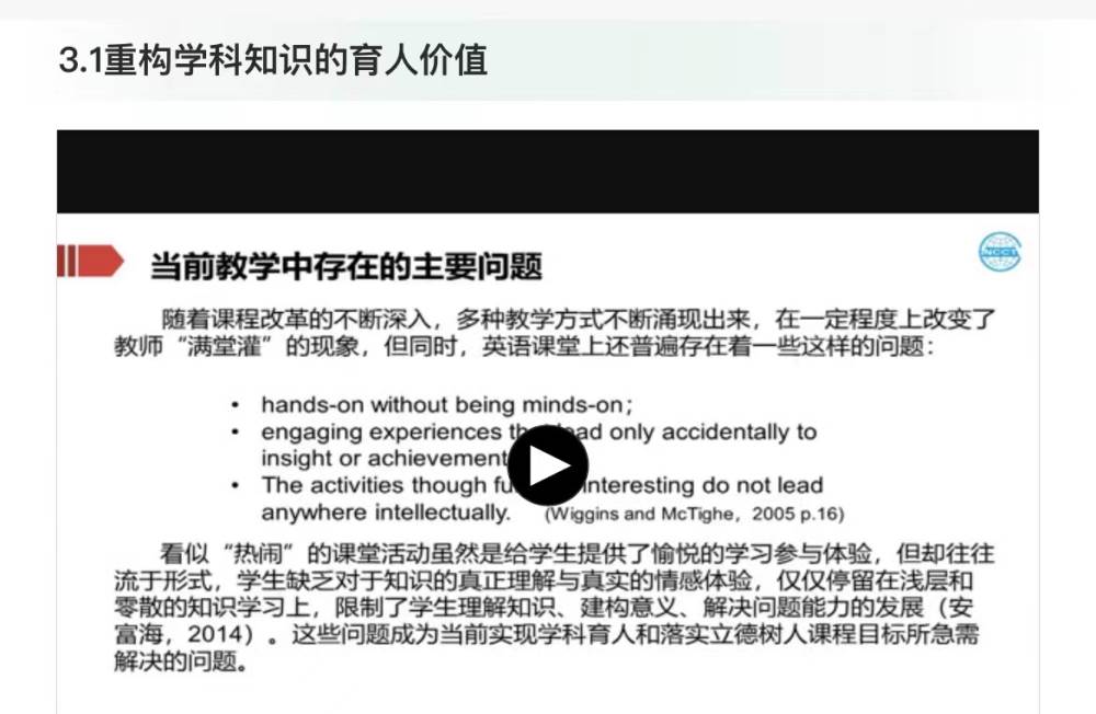 最后,各年级备课组的老师观看学习了“国家云平台”—学科研修模块一的重构学科知识育人价值部分。