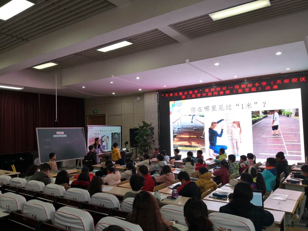 一支粉笔两袖风华,三尺讲台四季晴雨。从初赛教案评比到说课展示,共历时两个多月的打磨,在2021年12月1日下午终于迎来了期盼已久的泡桐树小学(天府校区)第二届青年教师赛课数学组的决赛。“减负增质”需要教师将目光从“教学”上升到“课程”,对大单元教学探索和研究成了新时期教学的主要趋势和方向。今天的赛课活动既是教学大比拼同时也是大单元教学的课例研讨活动。