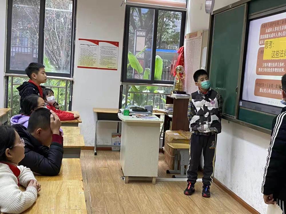 12月2日下午,为增强学生的法律意识,让学生学会用法律进行自我保护,预防和减少未成年学生违法犯罪现象的发生,促进青少年健康成长,泡小天府六年级各班开展了以“法律为我保驾护航”为主题的班会课。