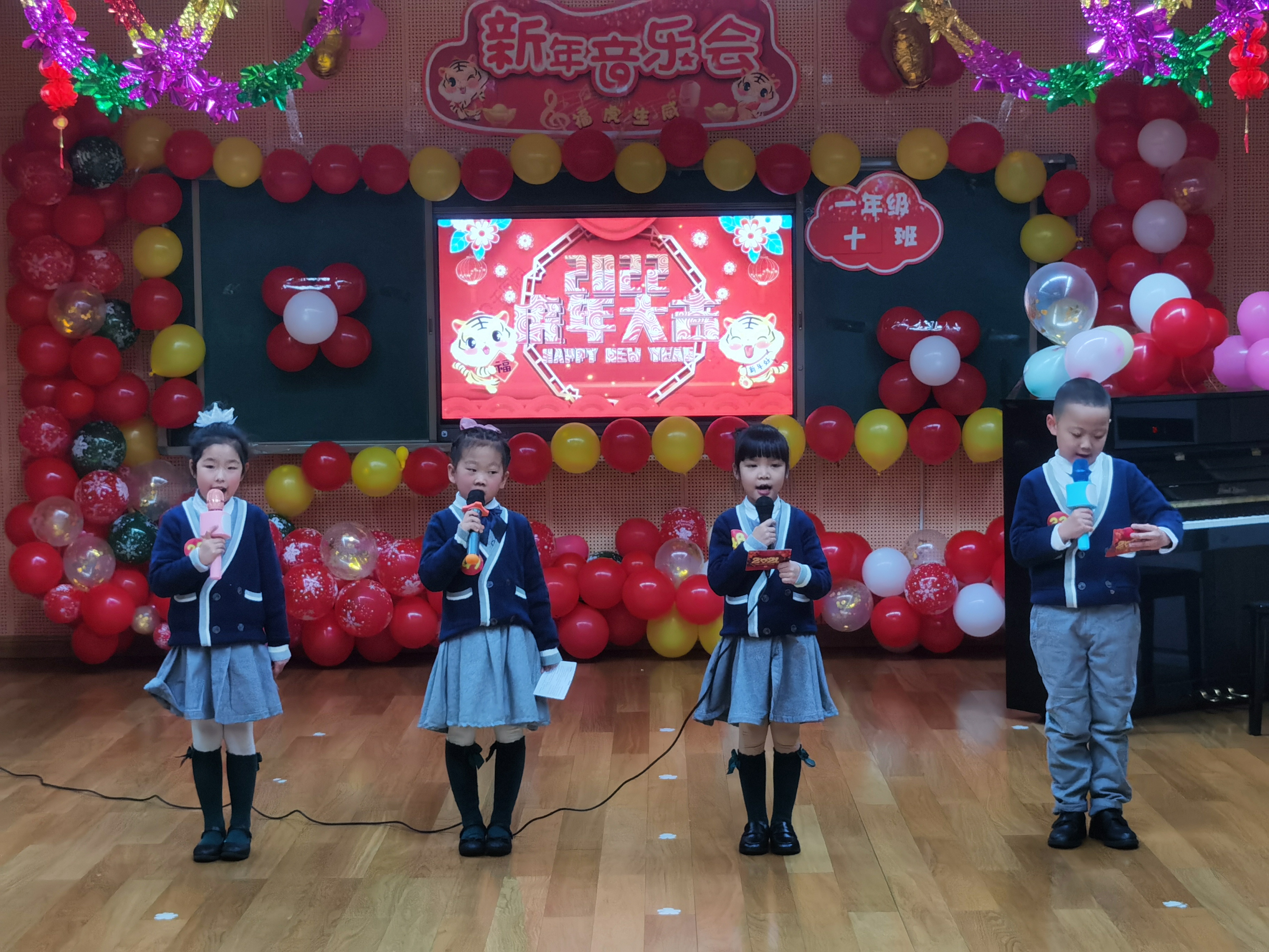 12月27日上午,一年级五班为我们拉开了班级新年音乐会的序幕,一群可爱的小泡泡穿着他们的蓝色礼服载歌载舞,孩子们将平日在音乐课学习到的歌曲:《其多列》《国旗国旗真美丽》《咏鹅》《小青蛙找家》《龙咚锵》新年好》《动物说话》和舞蹈课《小叮当队列》《数星星》《照镜子》《圈圈舞》,通过小组合作的形式呈现在全班面前精彩的呈现。