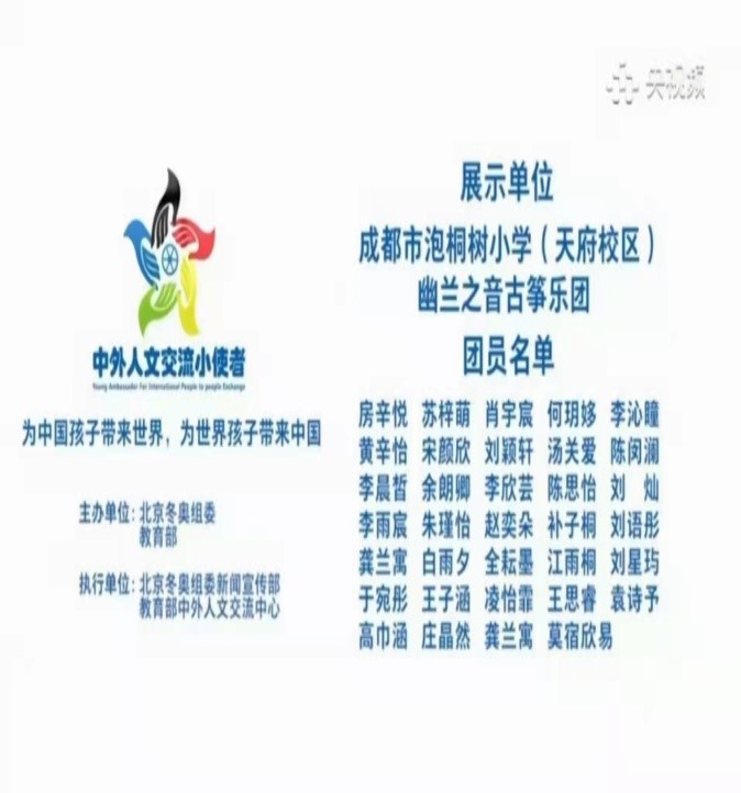 2022年1月3日,虽然是元旦放假的最后一天,但却是无比沸腾的一天。我们成都市泡桐树小学(天府校区)“幽兰之音”古筝乐团演奏的古筝重奏曲《山丹丹开花红艳艳》在"中外人文交流小使者"活动中展示,节目展示的平台是面向全国观众的央视频。