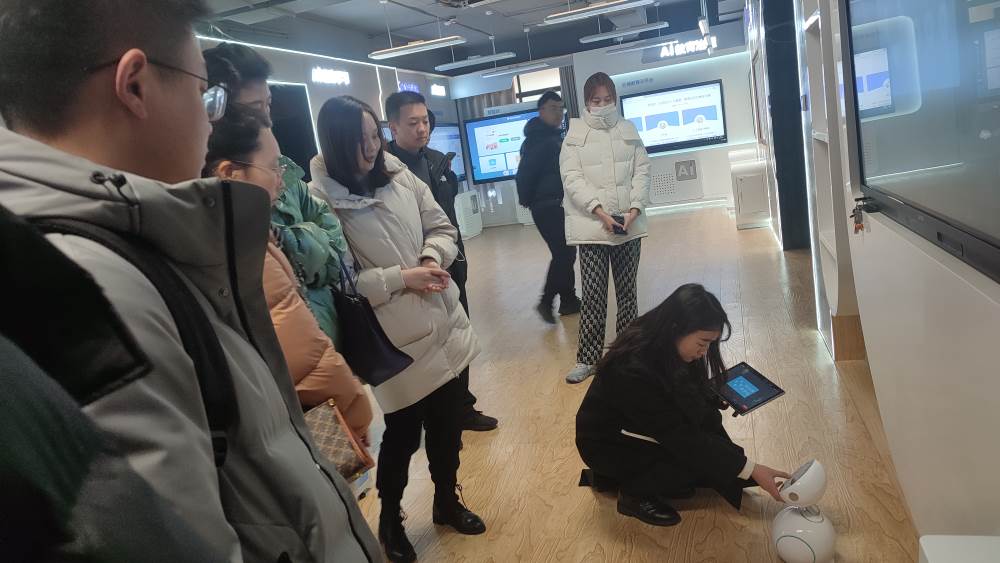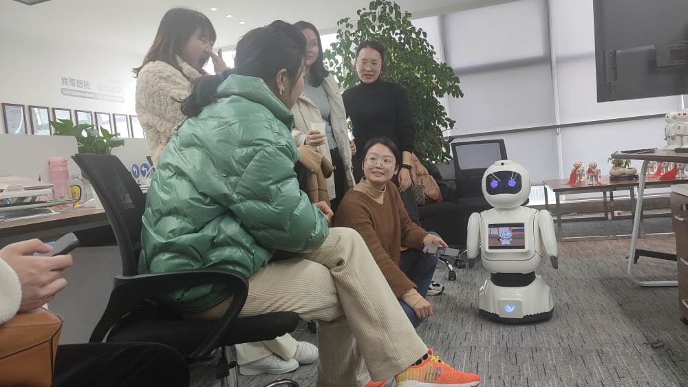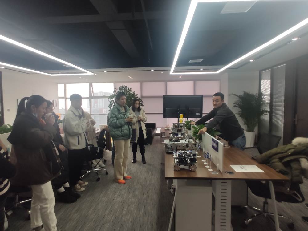最后,来到宾果智能实验室进行参观交流。一进门,宾果机器人就我们展示了舞蹈表演。胡总给我们具体介绍了宾果机器人的功能和课程设计,并展示了具体功能,王老师给我们介绍和展示了机器狗的功能。