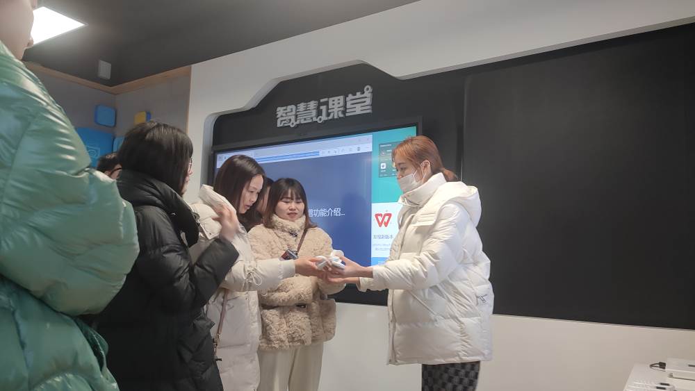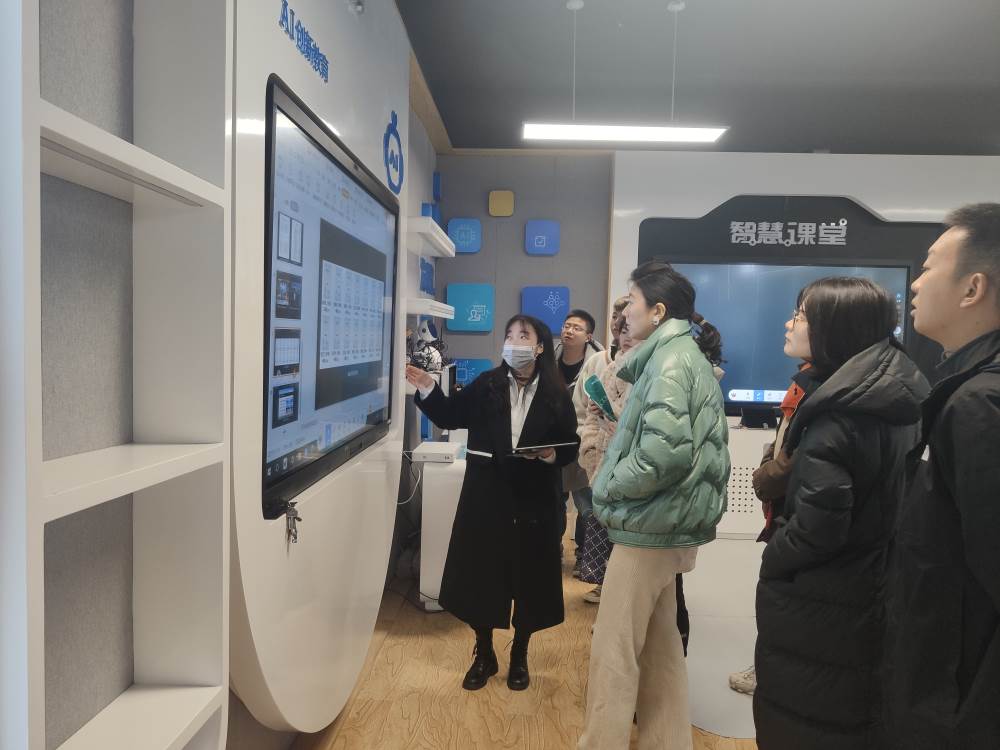 首先,来到四川教育装备创新体验中心进行参观交流。我们来到人工智能教育展厅,杨欣老师向我们介绍了人工智能课程,并以人脸识别为例进行了展示,通过课程实现让学生体验人工智能好玩及可玩、了解人工智能原理。刘雪寒老师向我们介绍了智慧课堂的功能:飞鼠、扩音、语音、录制等,以及资源:教学设计、语言学习、阅读学习等。