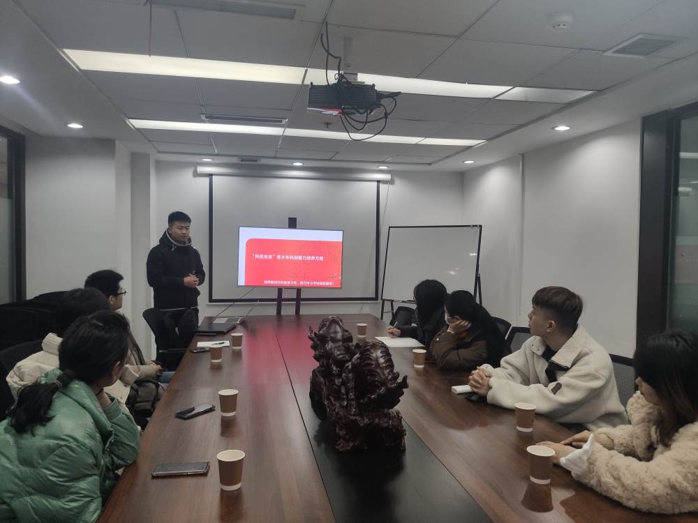 接着,来到西南教育创新加速中心进行参观交流。周林老师向我们介绍了校园科技创新项目,让学生爱上科学、爱上探索。其中,科学实验室从室内实验室、户外实验室、家庭实验室、线上实验室四个场景进行了介绍。介绍了科创课程:编程+数学、编程+物理+游戏、编程+故事艺术、编程+硬件音乐。科创活动从校园科创研学、校园科创社团、校园课程竞赛、校园科技节四个方面进行了介绍。