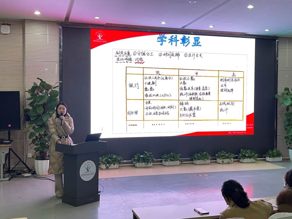 开展职业体验活动走哪条路最近?我们全年级需要乘坐几辆大巴车?如何分组更合理?学科融合怎么能少得了数学呢?第四、五小组的数学老师们以《妙哉,数学之为用》为题进行了汇报。