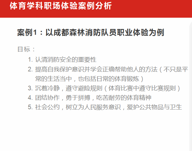 在实现“五育融合”的过程中,如果发挥体育的独特功能?如何让孩子在参加“职业体验综合活动”中感受体育学科的魅力呢?第六组的苏秋丽老师以“成都森林消防队员”为例具体分析了体育学科在职业体验中的融合过程。从知识,技能,行为,健康等方面对学生进行综合评价,提高学生的综合素养,实现更多的体育+。