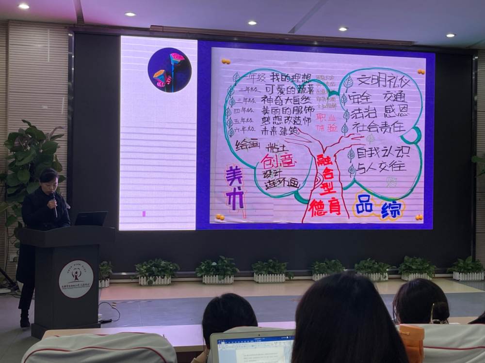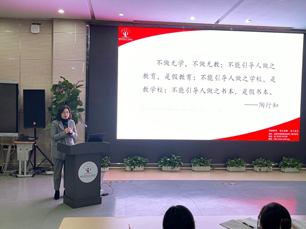 最后,学生家长发展中心何庆华主任就此次活动做了总结。她充分肯定了老师们在研讨活动中碰撞出的智慧火花,高度赞扬了各个学科组别出心裁的汇报形式。与此同时,何主任还为大家解读了“综合实践活动”的内涵以及“综合实践活动”的主要特征和课程目标,详细介绍了我校“我是天府人”特色综合实践课程体系。