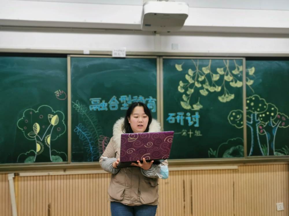 明确了活动的育人目标和评价方式,那我们如何将语文学科融入活动呢?别急,第三组袁翔老师就以《融合 交互 贯通》为题进行了汇报演讲。