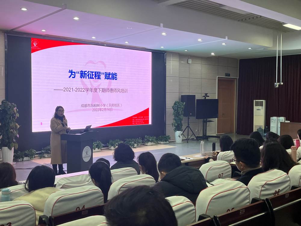 随着假期结束,开学之日已经临近。新学期为进一步加强师德师风建设,提升教师师德修养,引领教师共成长,2月16日,我校在多功能厅进行了以“为‘新征程’赋能”为主题的师德师风培训会,培训会由欧主任主持,宋校长出席了会议并讲话,全体教师参加了会议。