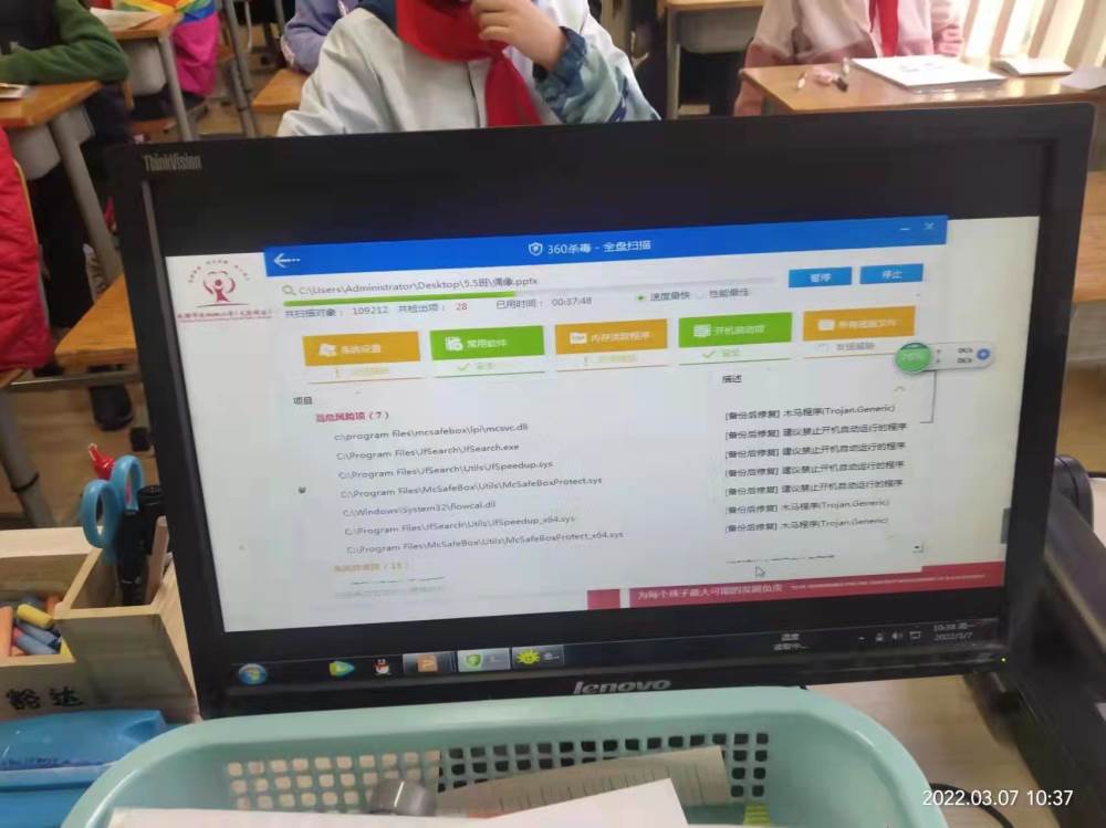 为了保证全校师生安全使用电脑,维护学校网络安全,从2022年3月7日开始,创新教育管理部开展了为期一周的“安全电脑、无毒校园”全校电脑杀毒活动。