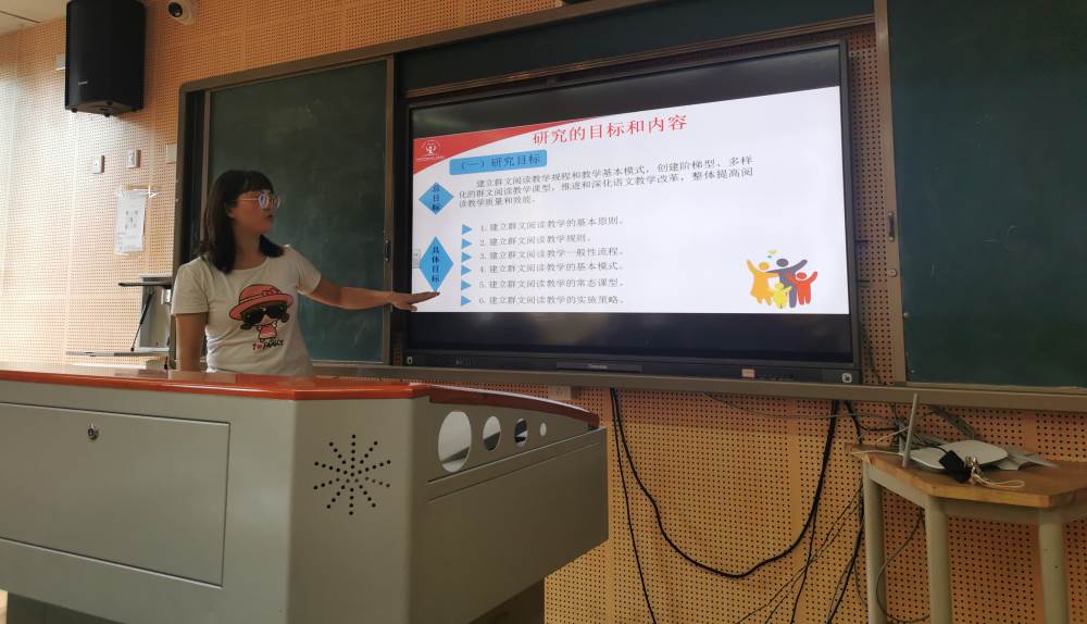 王文婷老师针对《完善小学语文群文阅读教学规程及构建常见课型的实践研究》提出了评价体系不完善,教师的实践机会少,辐射面窄的研究困惑。