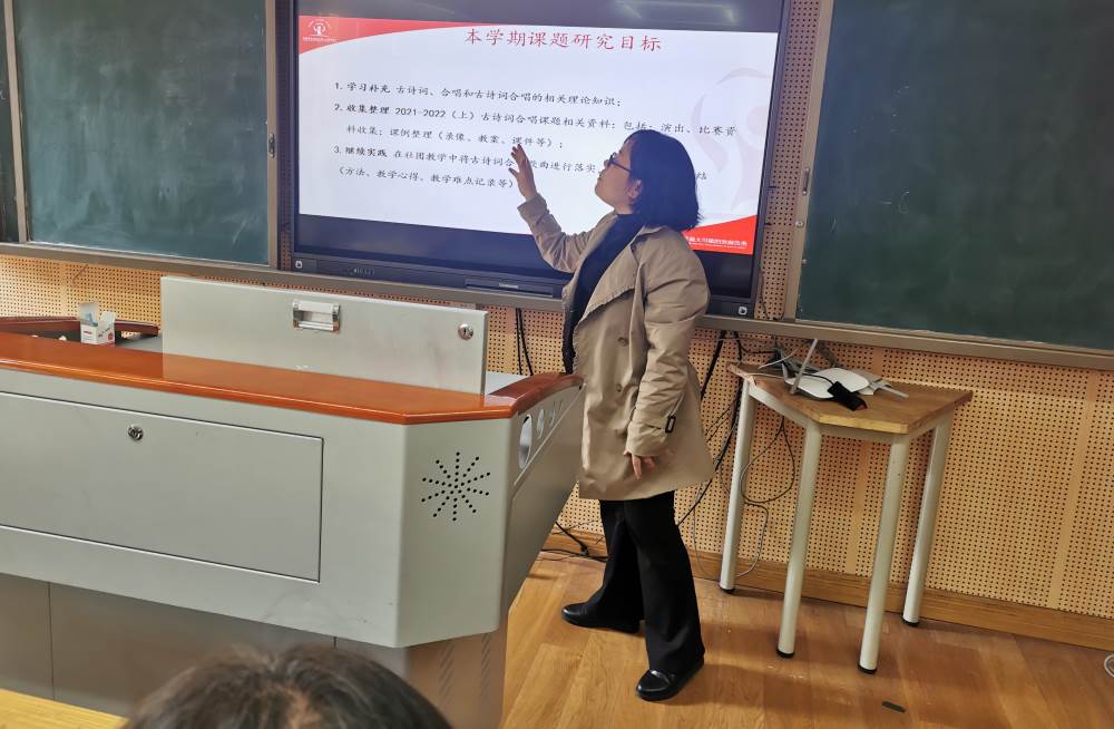 唐梅老师表示《小学古诗词合唱教学方法的研究》将从研究教师的进一步学习、古诗词合唱课题相关资料的收集整理、社团教学实践,这三个方面展开。