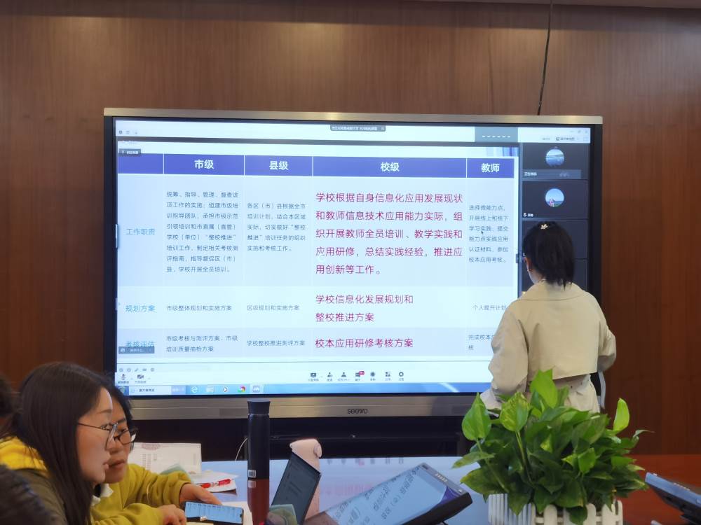 为更好推进我校教师信息技术应用能力提升工程2.0,2022年3月22日学校组织各科学科组长、备课组长以及骨干教师参与会议。上午,高老师就提升工程2.0推进进行指导和考核要点解读。加快教育信息化赋能提质,实施教师信息技术应用能力提升工程,推动教师主动适应信息化、人工智能等新技术变革,积极有效开展教育教学,是推动教育现代化的重要抓手。他要求,各学校加强工作组织,强化教育引导,切实提升管理团队的政策理解能力和规划设计能力,有效支持能力提升工程2.0的整校推进;要统筹协调,有序推进,建好信息化管理和培训指导两支队伍,建立“骨干引领、教师选学、团队互助、学校指导”的研修共同体,形成“学校指导有研修方案,教研组互助有专题研修计划,教师选学有任务清单”的研修机制;要严格考核,确保实效,做好过程资料的收集整理,及时总结反思和经验提炼,并在以后的教育教学中坚持学习和应用,学用融合。下午古老师和苏老师分别对学校校本研修实施过程进行指导与案例分享和能力点认证材料和课堂实录制作标准进行解读。