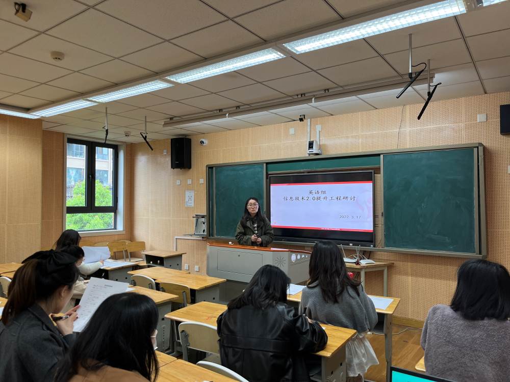 随后,王思雨老师介绍了信息技术2.0培训所包含的三项活动,其中包括教研组研讨活动、校本教研活动以及英语组听评课活动。