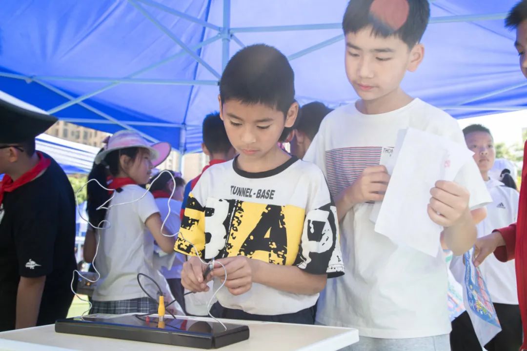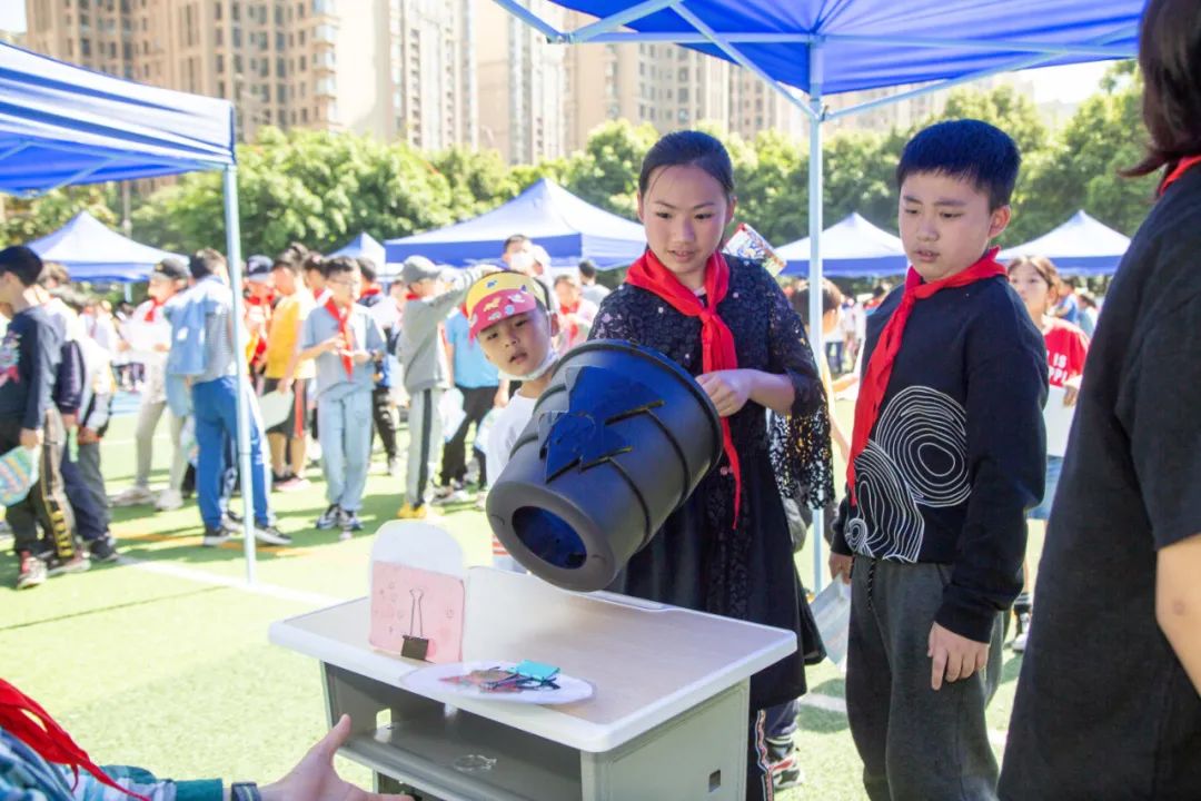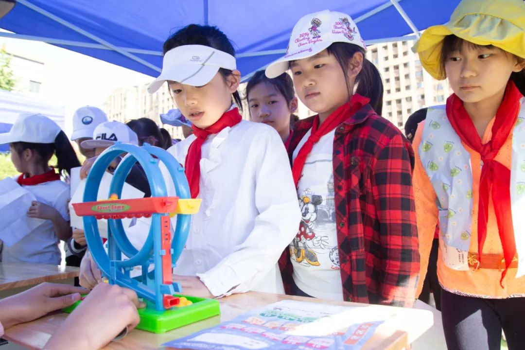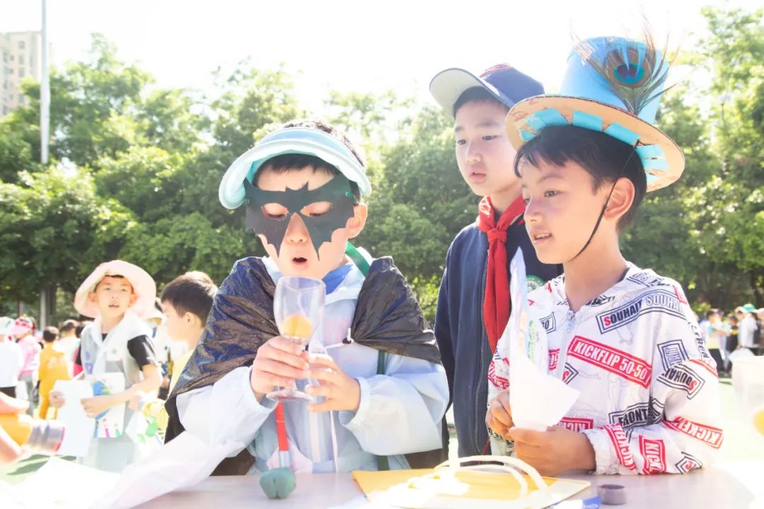 科技节上吸睛的穿搭异常抢眼 ,孩子们穿上亲手制作创意十足的时尚单品, 走到哪里都能聚集目光。 看!谁才是最靓的小泡泡 。 时间在不知不觉中流逝, 直到各个体验项目结束时, 同学们依然不舍离去 “快乐星球”的一天就这么结束了。 科技节开阔了学生的视野, 激发了他们研究科学的兴趣 ,更使其亲身感受到科技给生活带来的乐趣 , 在小泡泡心中播下了科技创新的种子。 学习科学知识,感悟科学魅力 乐享趣味童年,畅玩科学乐园!