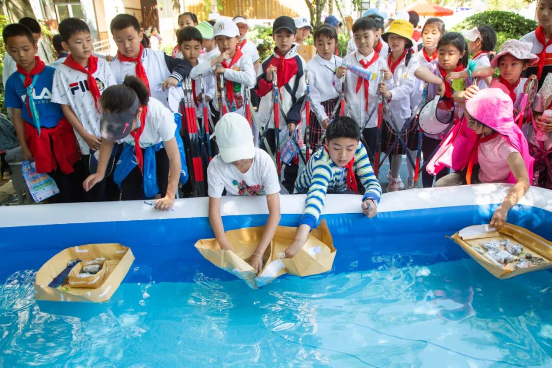 三、四年级现场赛, 则是在规定时间内, 现场限时折叠和装饰纸船 , 要求外形美观、承重力大 设计科学的小船才能获奖。