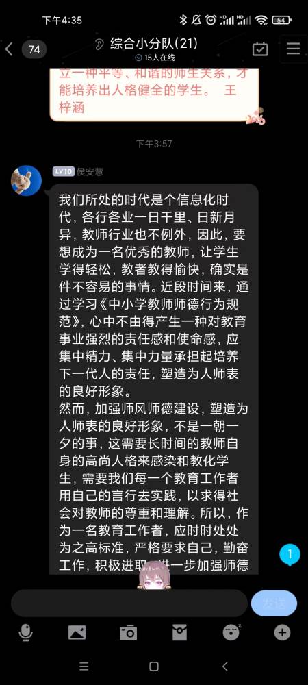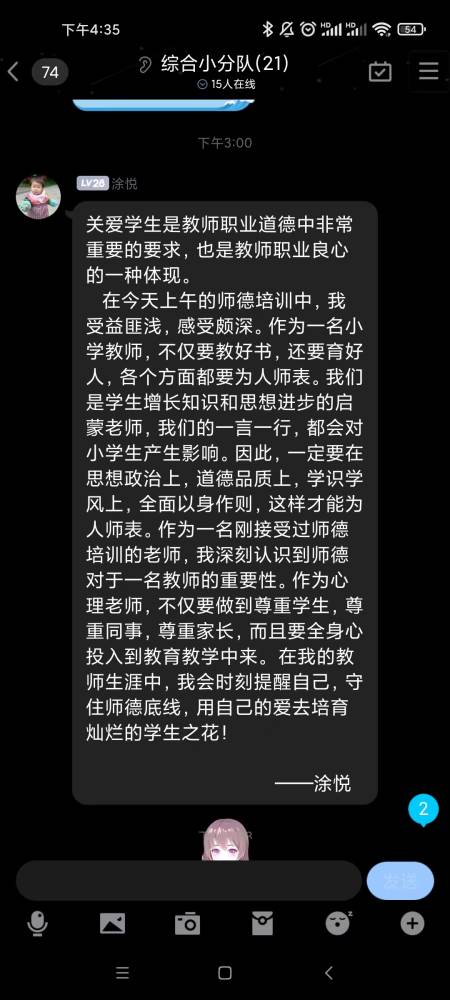 昨日,品综组全体老师在组长吕文凡的组织下开展了师德师风培训,组员认真学习教育部公开曝光第九批7起违反教师职业行为十项准则典型案例。每个组员都根据案例,进行了深刻的批评与自我批评,每个组员都表示要严于律己,努力维护教师队伍的良好形象。