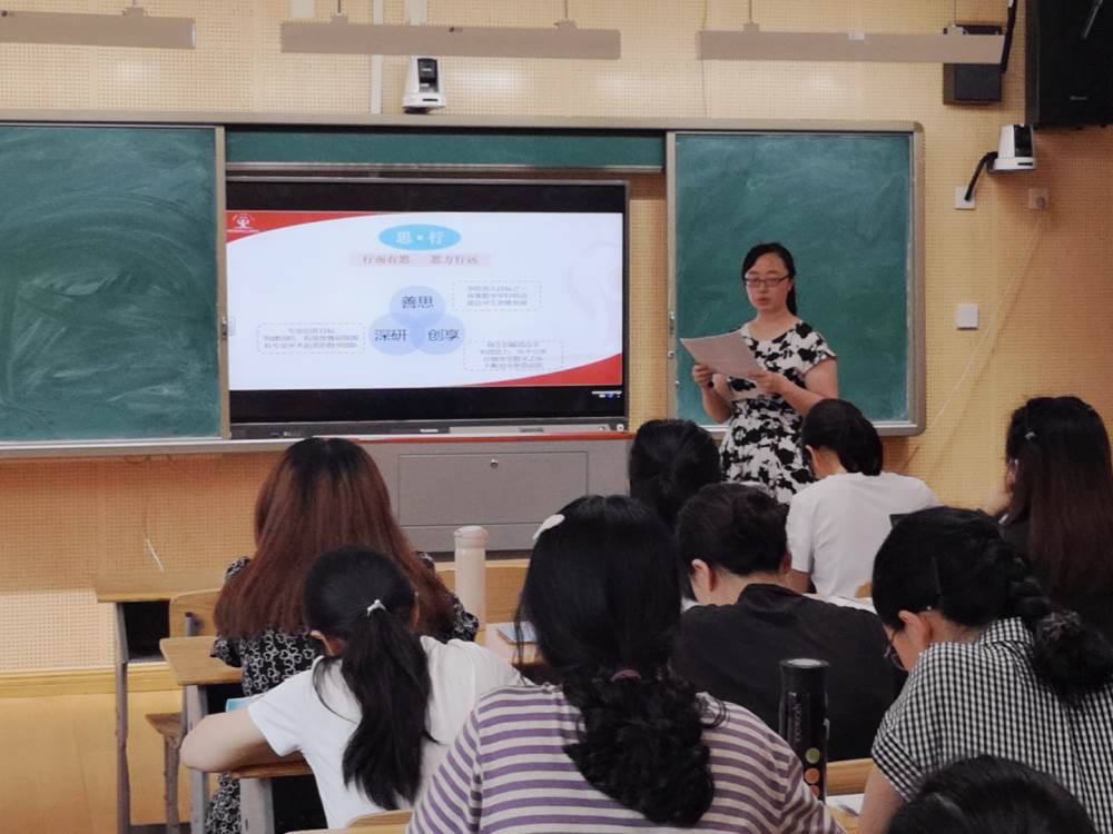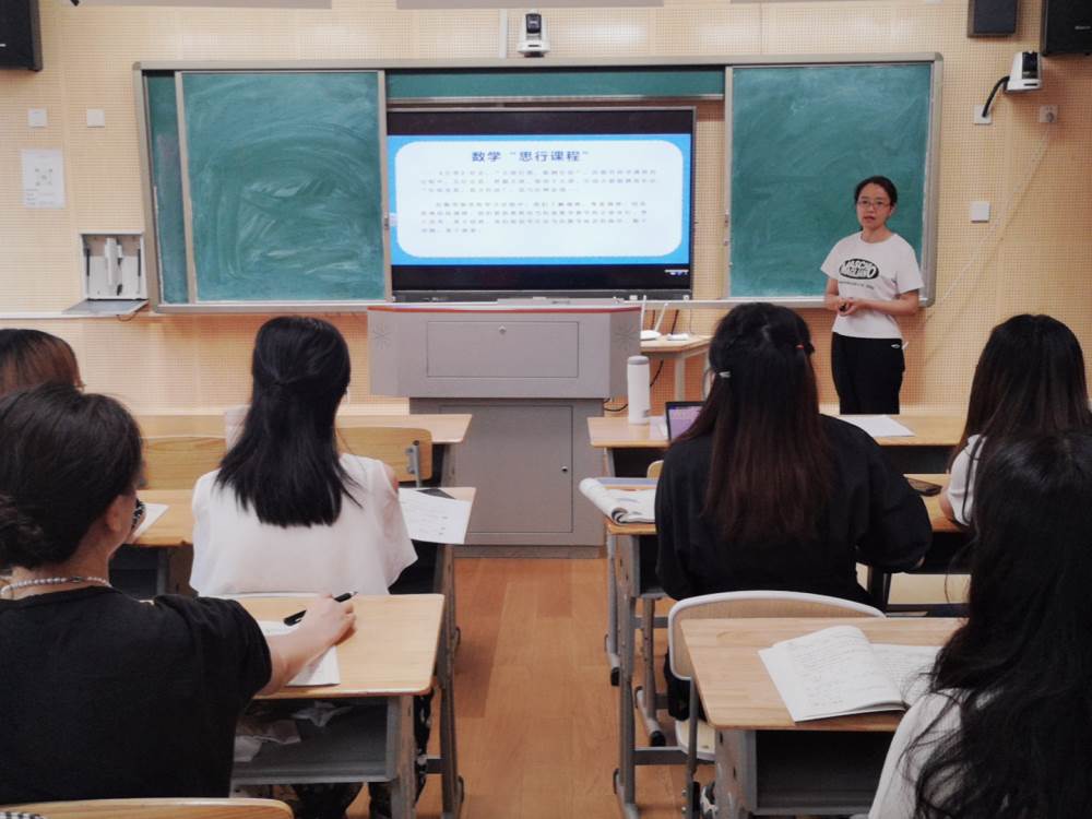 6月15日下午,数学组全体教师在学校录播室进行了教研活动。徐媛老师以《“真享、奇乐、创生”厚植育人之境》为题,介绍了泡天课程建设三年行动计划,并分享了数学“思行课程”,包括课程目标、课程内涵、课程体系与实施及课程评价。