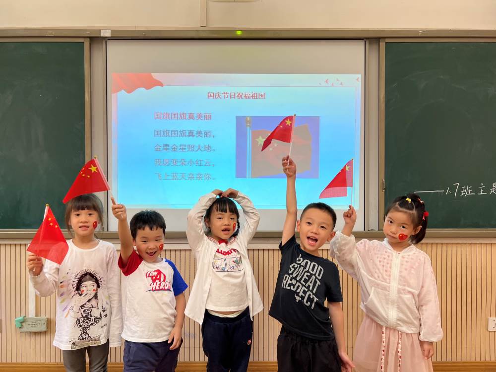 为庆祝中华人民共和国73周年华诞,2022年9月30日下午,泡桐树小学(天府校区)一年级各班展开了题为“喜迎二十大,萌娃颂国庆”的主题班会活动。