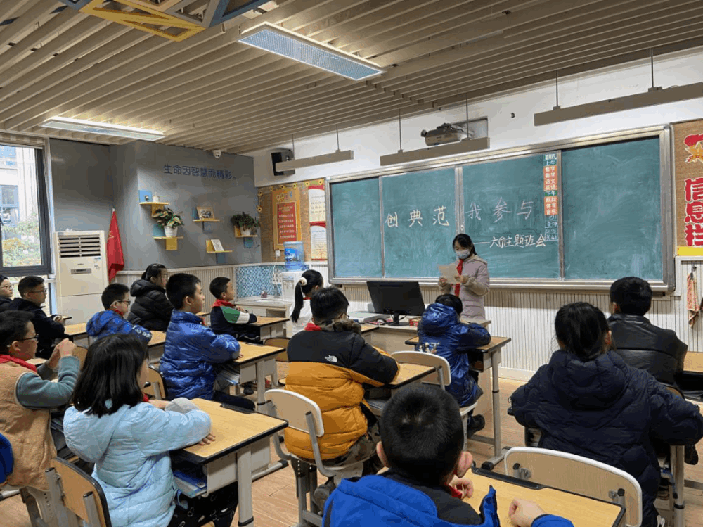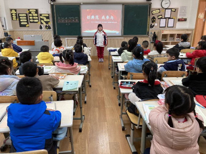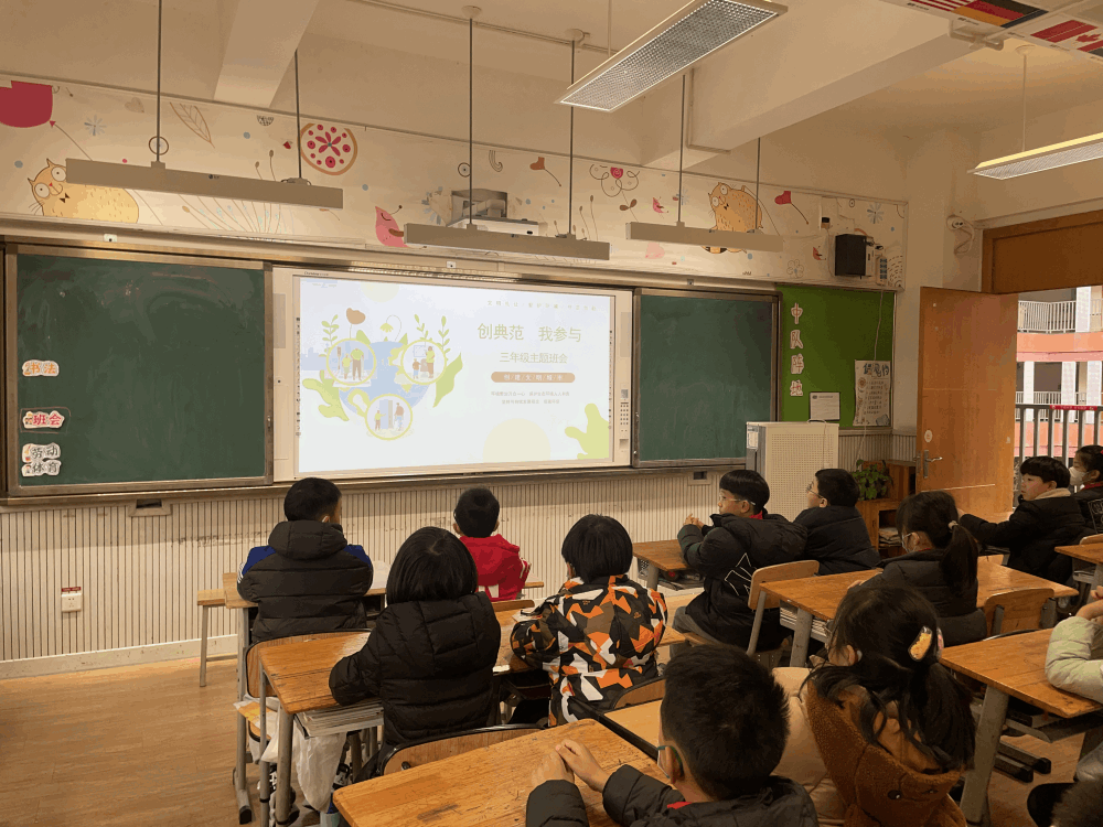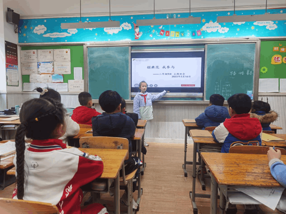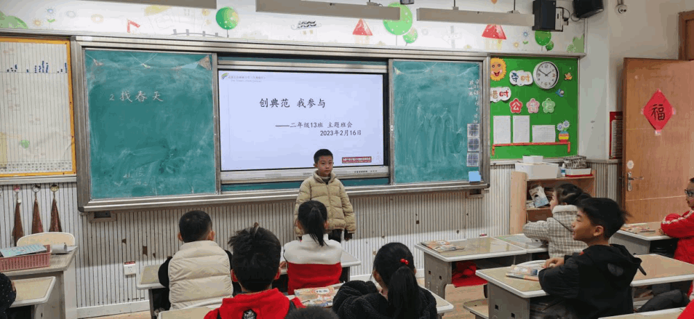 文明,始于心,践于行。一座城市的文明高度,在于每一个人的文明程度,提高市民素质是创建全国文明城市的根本所在。为了让孩子们在日常生活中更好地践行文明,为创建文明典范城市贡献自己的力量,2月16日下午,我校开展了以“创典范,我参与”为主题的班会活动。