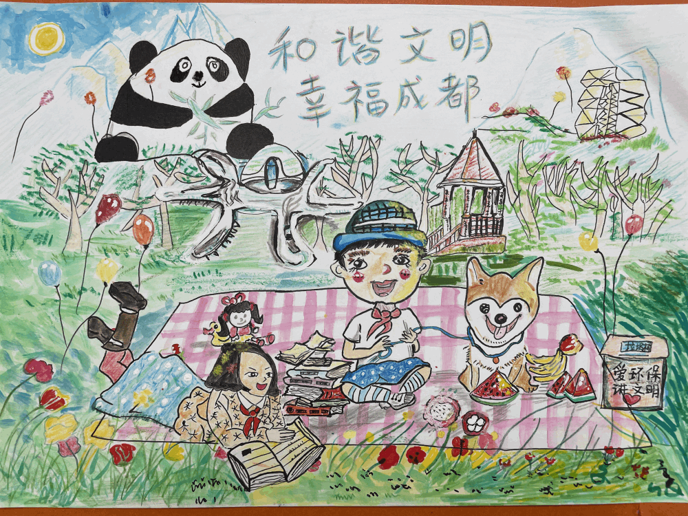 一二年级的班主任老师们在班级开展了社会主义核心价值观的宣传教育。从孩子们的生活实际出发,倡导节约、低碳、绿色的生活方式。孩子们通过讲述创城志愿服务故事、创城点滴感动以及记录成都在“创城”中的变化等方式更加了解成都故事,增强了作为成都市民的责任感、荣誉感。