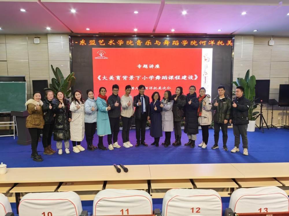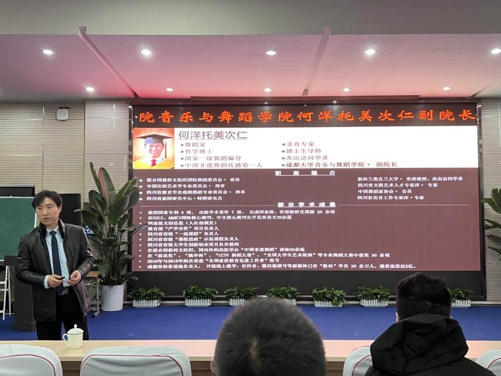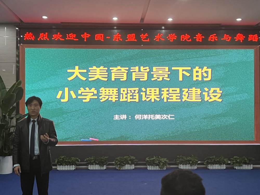 在“大美育”背景下小学舞蹈课程建设,就全面提升小学舞蹈课程,提高教师的专业素养,我校于2月23日上午,有幸邀请到中国东盟艺术学院与舞蹈学院何洋托美次仁副院长,在多功能厅就《大美育背景下小学舞蹈课程建设》进行专题培训活动,泡小天府廖敏副校长及全体音乐教师参与了此次会议。